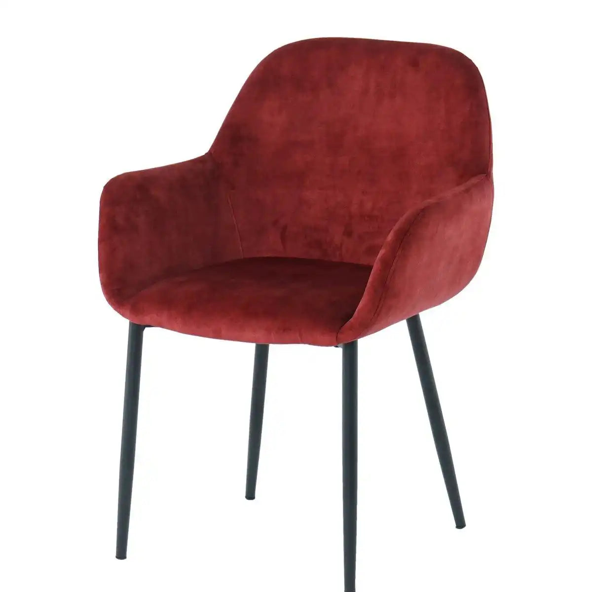 Dieser kompakte Armlehnstuhl überzeugt durch seinen schmeichelnden Samtbezug und eine hohe Bequemlichkeit. Er bietet großen Sitzkomfort und ist zudem auch optisch ein echter Blickfang. Der Samtbezug bildet einen schönen Kontrast mit den mattschwarzen Beinen aus pulverbeschichtetem Metall. Der leicht gerundete Rücken und die ausgestellten Armlehnen schmiegen sich ihrem Körper perfekt an. Dieser Armlehnstuhl lädt zum Verweilen ein. Egal ob am Esszimmertisch oder am Wohnzimmertisch, es ist immer die perfekte Lösung. Sitzhöhe ca. 47 cm, Sitzbreite ca. 40 cm, Höhe der Armlehnen ca. 62 cm, Abstand zwischen den Beinen vorne ca. 43 cm, Abstand zwischen den Beinen seitlich ca. 44 cm, Ø Beine oben ca. 2,5 cm, Ø Beine unten ca. 1,5 cm, Bezug 100 % PES, Pilling 4,5, Scheuertouren >40.000, Lichtbeständigkeit 4,0, Farbbeständigkeit 4,0