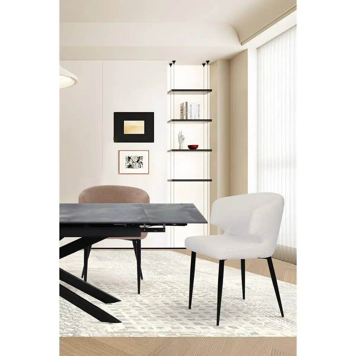Verleihen Sie Ihrem Wohn- oder Essbereich mit diesem Armlehnstuhl 2er Set einen Hauch von Gemütlichkeit und modernem Chic. Der Bezug aus kuscheligem Teddyfell lädt zum Entspannen ein und bringt ein warmes, weiches Gefühl in Ihr Zuhause. Gleichzeitig ist der Stoff Oeko-Tex zertifiziert, was eine umweltfreundliche und schadstofffreie Produktion garantiert. Die klaren Linien und das zeitlose Design dieser Stühle machen sie zu einem echten Blickfang in jeder Umgebung. Die Beine aus robustem Metall sind mit einer schwarzen Mattpulverbeschichtung versehen, die dem Set eine moderne, edle Note verleiht und gleichzeitig für Langlebigkeit sorgt. Dank der weichen Polsterung und der ergonomischen Armlehnen bieten die Stühle einen besonders hohen Sitzkomfort. Egal, ob am Esstisch, im Wohnzimmer oder im Büro – diese Stühle vereinen Funktionalität und Stil auf höchstem Niveau. Ob als gemütliche Sitzgelegenheit für gesellige Abende oder als stilvolle Ergänzung im Home-Office, das Armlehnstuhl 2er Set mit Teddyfell-Bezug passt sich flexibel Ihrem Wohnstil an und fügt sich harmonisch in moderne wie auch klassische Einrichtungen ein. Sitzhöhe: ca. 53 cm, Sitzbreite: ca. 53 cm, Sitztiefe: ca. 45 cm, Schaumstoff Polyetherpolyol, Bezug 100% Polyester, Beine mit schwarzer Mattpulverbeschichtung, Lichtbeständigkeit Bezug 4, Pilling Bezug 4, Abnutzungsresistenz 30.000 Scheuertouren/Martindale, Bezugstoff Oeko-Tex zertifiziert