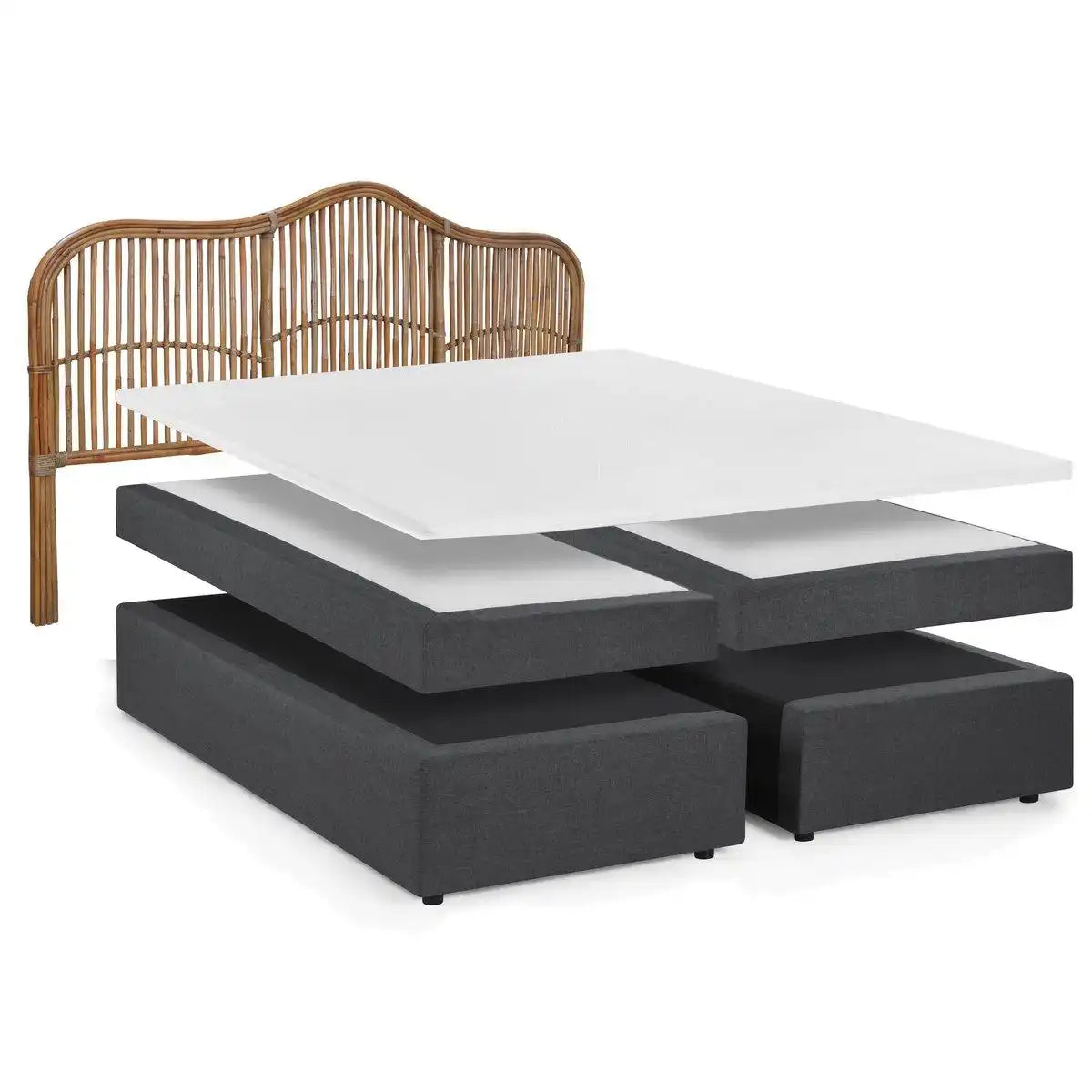 Boxspringbett mit Rattan-Kopfteil