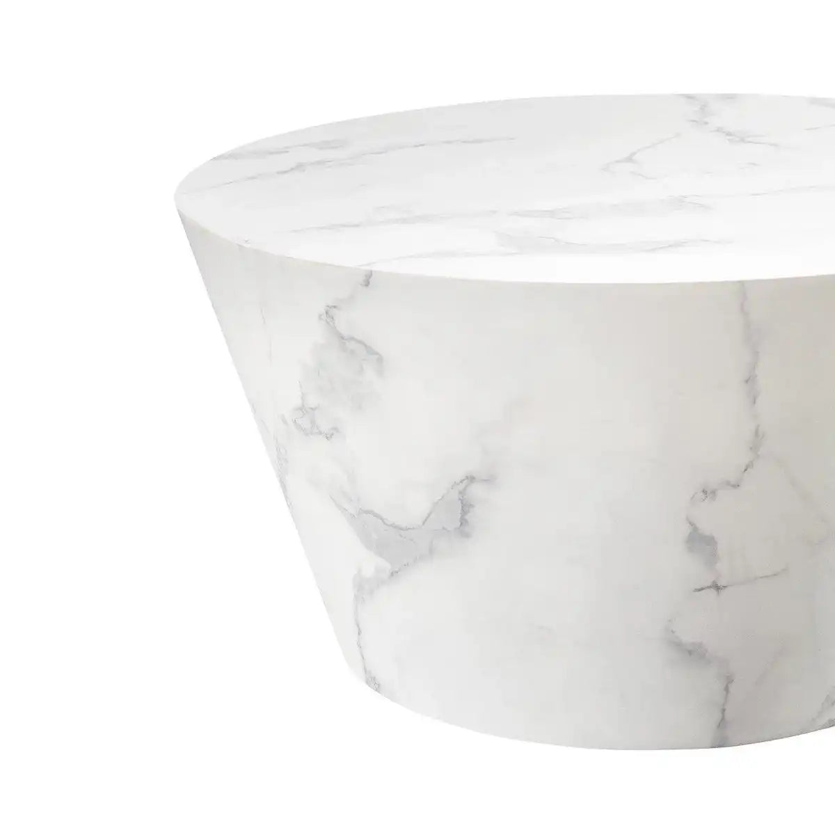Dieser Couchtisch mit einer folierten Oberfläche in weißer Marmoroptik bringt einen Hauch von Luxus und Stil in Ihr Wohnzimmer. Dieses Möbelstück vereint modernes Design mit praktischer Handhabung und ist die perfekte Ergänzung für jedes Zuhause. Die folierte Oberfläche in weißer Marmoroptik verleiht dem Couchtisch eine edle und zeitlose Ausstrahlung. Die realistische Marmoroptik schafft einen eleganten und modernen Look, der sich nahtlos in verschiedene Einrichtungsstile integrieren lässt. Der Couchtisch wird fertig montiert geliefert, sodass Sie ihn sofort in Ihrem Wohnzimmer platzieren und nutzen können. Dies spart Zeit und Mühe und gewährleistet, dass der Tisch stabil und sicher steht. Mit einem Durchmesser von 80 cm bietet der Couchtisch ausreichend Platz für Zeitschriften, Getränke und Dekorationsobjekte, ohne dabei zu viel Raum einzunehmen. Seine runde Form fügt sich harmonisch in verschiedene Raumkonzepte ein und sorgt für eine angenehme Atmosphäre. Dieser Couchtisch ist nicht nur ein praktisches Möbelstück, sondern auch ein stilvolles Statement, das jedem Raum eine besondere Note verleiht. Ø Sockel ca. 55 cm
