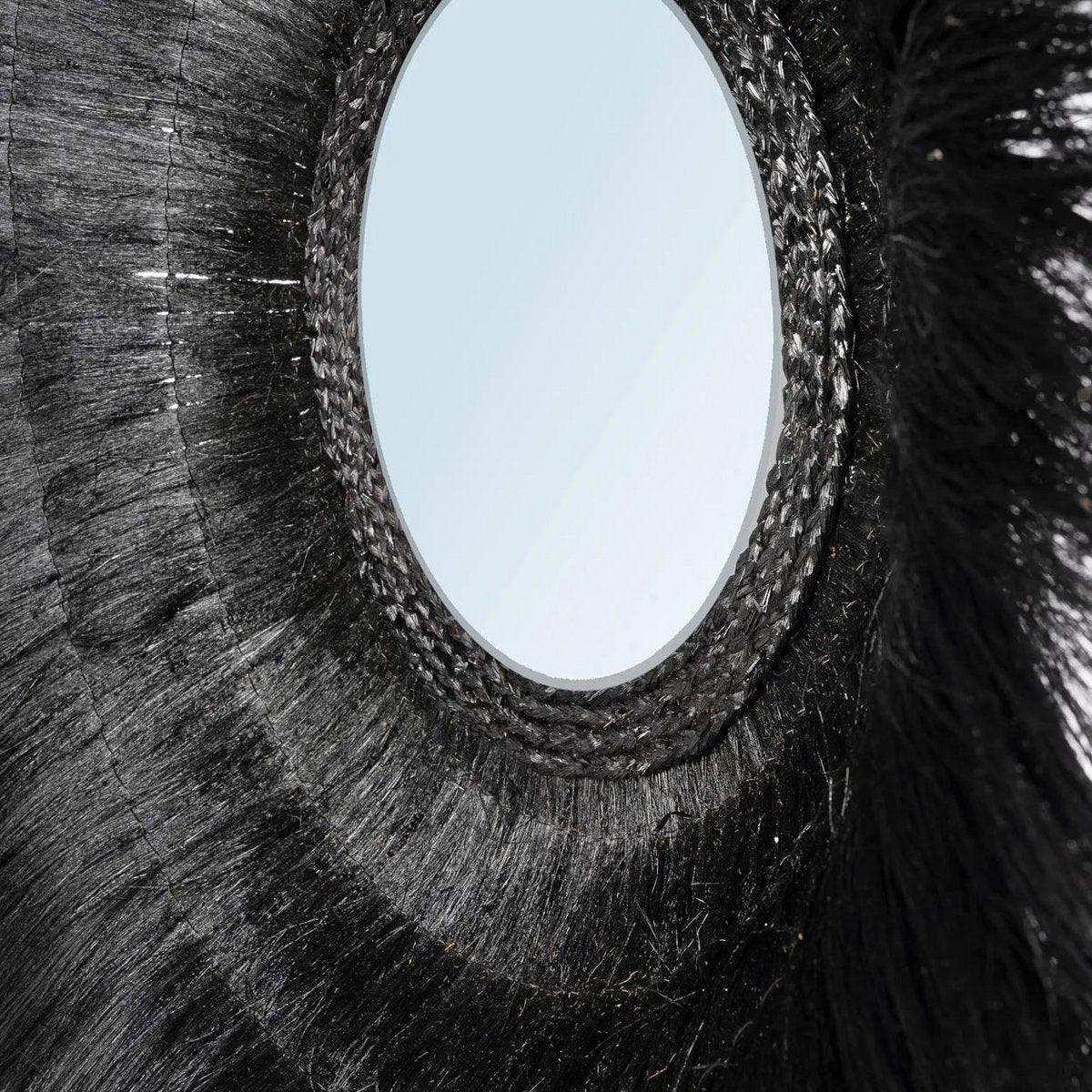 Dieser atemberaubende Spiegel ist eine fantastische Möglichkeit, Ihrem Zuhause, Ihrem Büro oder sogar Ihrem überdachten Außenbereich ein wenig Dramatik zu verleihen. Statt flach ist das Glas dieses Spiegels „eingelassen“, was dem Design viel Tiefe verleiht. Von Hand aus getrocknetem, schwarz gefärbtem Gras gefertigt, macht der wunderschöne tiefe Farbton dieses Stücks es zu einem einzigartigen und zeitlosen Schatz. Auch in Natur erhältlich.