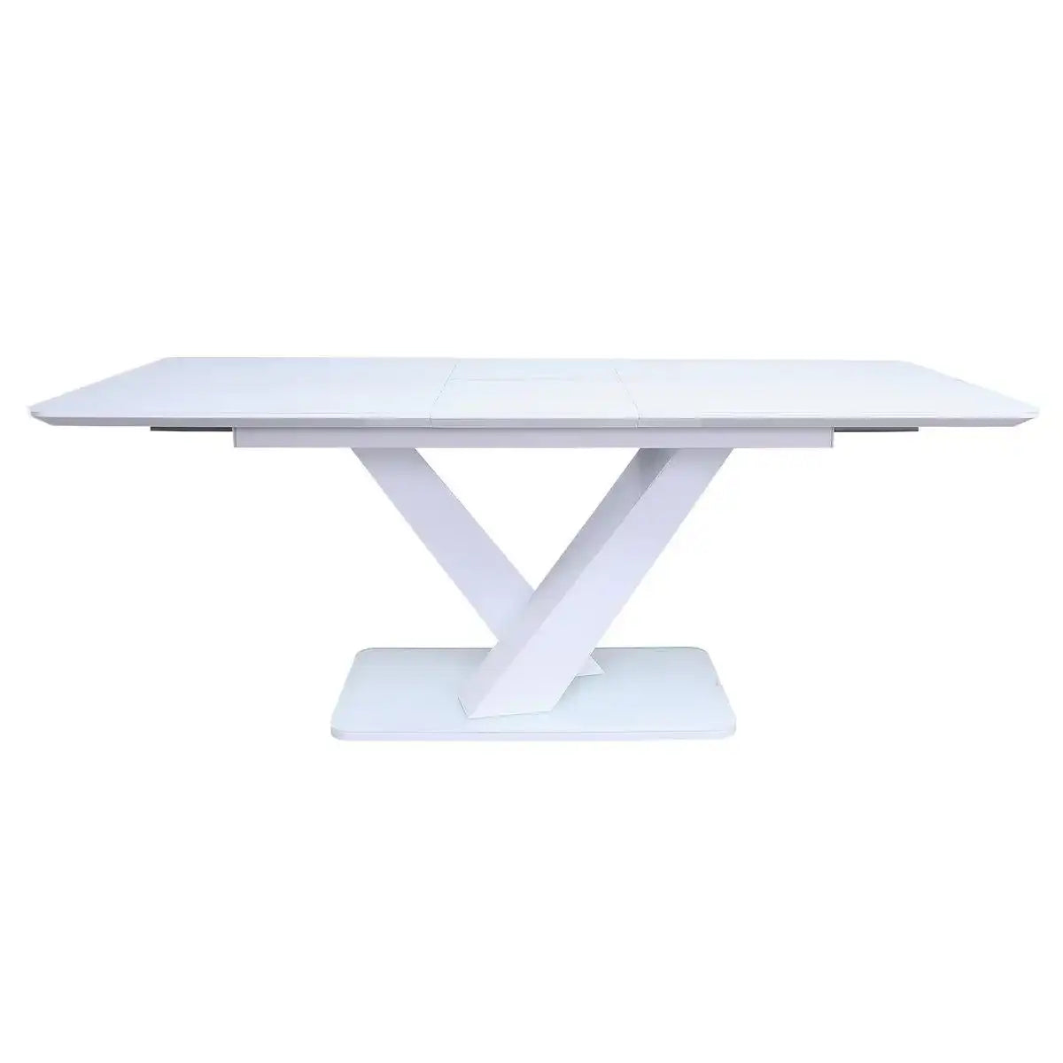 Puristisches Design, dezente Formgebung und klassischer Kunstlederbezug. Die 5-tlg. Essgruppe bestehend aus einem Esstisch in der Farbe Weiß mit Auszugfunktion und 4 Esszimmerstühlen wird das neue Herzstück in Ihrem Essbereich. Die Tischplatte aus MDF wird abgerundet durch 5 mm Sicherheitsglas. Der Sockel ist ebenfalls aus MDF und Glas. Dies sieht nicht nur stylisch aus, es verleiht dem Tisch auch eine sehr gute Stabilität. Wenn einmal mehr Platz benötigt wird, lässt sich der Esstisch von 160 cm auf großzügige 200 cm ausziehen. Zeitlos elegant ist auch der weiße Kunstlederbezug der um 360° drehbaren Stühle der Essgruppe. Möbel in weiß sehen nicht nur freundlich aus und sind voll im Trend, sie passen auch nahezu in jedes Interior. Maße des Tischs: B160-200xT90xH77 cm, Tischplatte 35 mm MDF mit 5 mm Sicherheitsglas, Sockel 20 mm MDF mit 10 mm Glas, Maße des Sockels 90,5x50,2 cm, Auszug 90x40 cm, Maße des Stuhls: B45xT65xH106 cm, Sitzhöhe: ca. 47 cm.