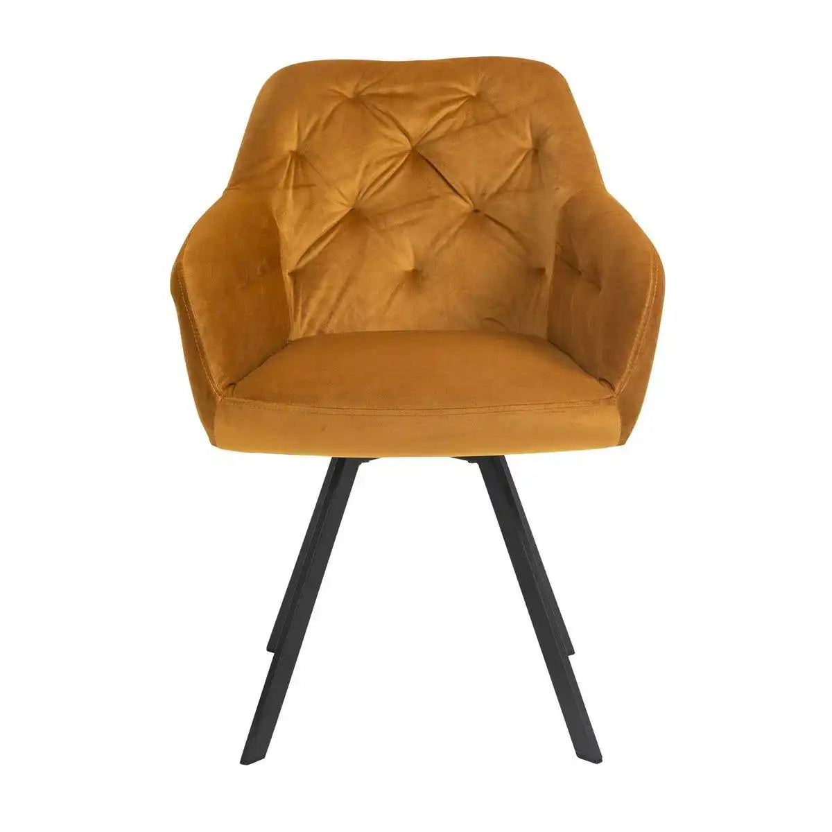 Vintage-Flair mit glamourösem Touch: Die 5-teilige Essgruppe besteht aus einem Tisch aus massiver Akazie, sowie 4 Armlehnstühlen mit edlem Samt-Bezug. Die 26 mm starke Tischplatte aus massivem Akazie wird mit OSMO Hartwachs-Möbelöl in seidenmattem Finish behandelt, sodass der Tisch vor Wasser, Schmutz und Abrieb geschützt ist. Besonderes Highlight: Das U-Gestell aus schwarz lackiertem Metall verleiht dem Tisch eine sehr gute Stabilität und ist das passende Gegenstück zur Tischplatte in warmem Walnusston. Mit diesem Esstisch mit echter Baumkante holen Sie sich ein Stück Natur in die eigenen vier Wände. Die Stühle setzen passend dazu schicke Akzente. Die üppige Polsterung der Sitzfläche und Armlehnen sorgt für optimalen Sitzkomfort, der hochwertige Look wird abgerundet durch die Knopfheftung im Rücken und das robuste Gestell, bestehend aus vier abgeschrägten Beinen in pulverbeschichtetem schwarzem Metall. Das Extra des Stuhls: Die 360° Drehfunktion, die für Bewegungsfreiheit und Komfort sorgt. Hinweis: Da es sich bei diesem Massivholztisch um ein Naturprodukt handelt, kann es zu Astlöchern oder unterschiedlichen Farbschmückungen kommen, die jedoch keinen Fehler darstellen, sondern den individuellen Charakter des Echtholzes unterstreichen. Maße des Tischs: B160xT90xH75 cm, Plattenstärke: 26 mm, Tischplatte mit Osmo Hartwachs-Öl Nussbaumfarbig behandelt in seidenmattem Finish, schützt vor Wasser, Schmutz und Abrieb, Gestell schwarz lackiert, Maße des Gestells: ca. 4x8 cm, Maße des Stuhls: B61xT62xH85 cm, Mit 360° Drehplatte unter der Sitzfläche, Sitzhöhe: 48,5 cm, Sitztiefe: 44 cm, Sitzbreite: ca. 46 cm, Höhe der Armlehnen: 65 cm.