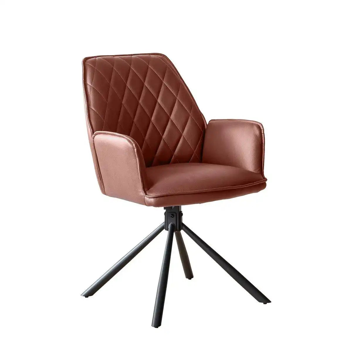 Diese 5-teilige Essgruppe mit modernem Charme ist die richtige Lösung für alle, die mehr als nur einen Platz zum Essen suchen. Die 26 mm starke Tischplatte aus massivem Akazie wird mit OSMO Hartwachs-Möbelöl in seidenmattem Finish behandelt, sodass der Tisch vor Wasser, Schmutz und Abrieb geschützt ist. Besonderes Highlight: Das U-Gestell aus schwarz lackiertem Metall verleiht dem Tisch eine sehr gute Stabilität und ist das passende Gegenstück zur Tischplatte in warmem Walnusston. Mit diesem Esstisch mit echter Baumkante holen Sie sich ein Stück Natur in die eigenen vier Wände. Die Armlehnstühle überzeugen durch die funktionale 360 Grad Drehfunktion. Der Microfaser-Bezug in Kunstlederoptik sieht sehr edel aus und passt perfekt zu den schwarzen Beinen. Das 4-beinige Metallgestell gewährleistet einen sicheren und stabilen Stand. Der Polsterstuhl bietet durch seine sesselartige Sitzfläche einen Sitzkomfort der Extraklasse. Die Rautensteppung auf der Rückenlehne ist eine Augenweide und macht dieses Möbel zum absoluten Blickfang in Ihrem Wohnraum. Achtung: Da es sich bei diesem Massivholztisch um ein Naturprodukt handelt, kann es zu Astlöchern oder unterschiedlichen Farbschmückungen kommen, die jedoch keine Fehler darstellen, sondern den individuellen Charakter des Echtholzes unterstreichen. Maße des Tischs: B160xT90xH75 cm, Plattenstärke: 26 mm, Tischplatte mit Osmo Hartwachs-Öl Nussbaumfarbig behandelt in seidenmattem Finish, schützt vor Wasser, Schmutz und Abrieb, Gestell schwarz lackiert, Maße des Gestells: ca. 4x8 cm.