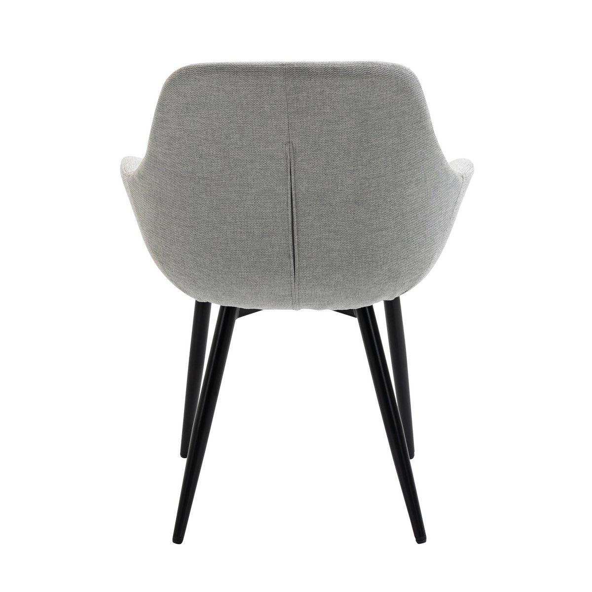 Diese 5-teilige Essgruppe mit modernem Charme ist die richtige Lösung für alle, die mehr als nur einen Platz zum Essen suchen. Die 26 mm starke Tischplatte aus massiver Akazie wird mit OSMO Hartwachs-Möbelöl in seidenmattem Finish behandelt, so dass der Tisch vor Wasser, Schmutz und Abrieb geschützt ist. Besonderes Highlight: Das U-Gestell aus schwarz lackiertem Metall verleiht dem Tisch eine sehr gute Stabilität und ist das passende Gegenstück zur Tischplatte in warmem Walnusston. Mit diesem Esstisch mit echter Baumkante holen Sie sich ein Stück Natur in die eigenen vier Wände. Die passenden Stühle dazu zeigen, dass Eleganz und Komfort sich nicht immer unterscheiden müssen. Die Sitzfläche, die Rückenlehne und die Armlehnen sind mit einem Strukturstoff wunderbar gemütlich gepolstert. Der Stuhl hat mit seinen matt schwarzen Beinen aus pulverbeschichtetem Metall einen festen Stand und bildet ein harmonisches Gesamtbild. Achtung: Da es sich bei diesem Massivholztisch um ein Naturprodukt handelt, kann es zu Astlöchern oder unterschiedlichen Farbschmückungen kommen, welche jedoch keine Fehler darstellen, sondern den individuellen Charakter des Echtholzes unterstreichen. Maße des Tischs: B160xT90xH75 cm, Plattenstärke: 26 mm, Tischplatte mit Osmo Hartwachs-Öl Nussbaumfarbig behandelt in seidenmattem Finish, schützt vor Wasser, Schmutz und Abrieb, Gestell schwarz lackiert, Maße des Gestells: ca. 4x8 cm, Maße des Stuhls: B64xT59xH86 cm, Sitzhöhe: ca. 47 cm, Sitztiefe: ca. 44 cm, Sitzbreite: ca. 44 cm, Höhe der Armlehnen: ca. 61 cm, Höhe der Rückenlehne: ca. 40 cm, max. Belastbarkeit ca. 110 KG.