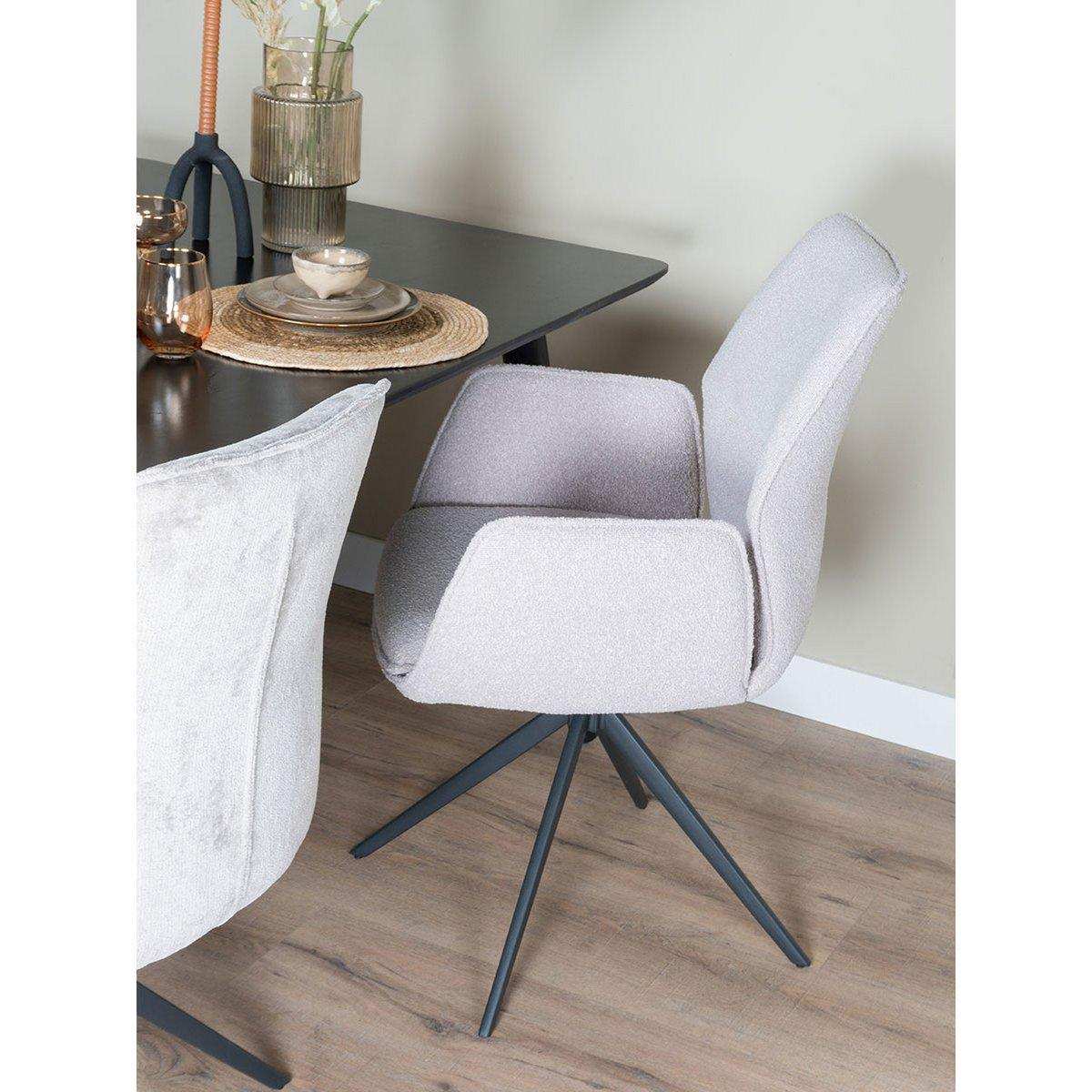 Mit seinem einzigartigen 360-Grad-Drehstuhlmechanismus bietet der Esszimmerstuhl Miley unvergleichliche Freiheit und Bequemlichkeit, sodass Sie sich beim Essen oder bei geselligen Treffen mühelos bewegen können.
