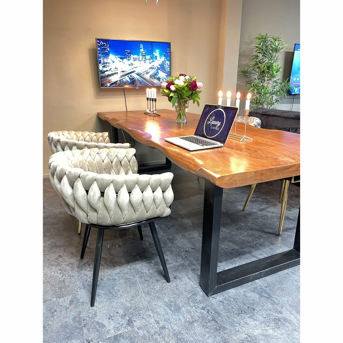 Dieser schöne Eva Chair Velvet Taupe Black Frame hat ein schönes Samtgewebemuster in der umlaufenden Rückenlehne des Stuhls. Dieser Samtstuhl ist ein moderner, luxuriöser Hingucker in Ihrem Interieur, ein markantes Erscheinungsbild mit einem einzigartigen Design. Das weiche Sitzkissen und die bequeme Rückenlehne bieten die perfekte Sitzposition für lange Abende am Tisch. Der Eva Chair Velvet Taupe and Black Frame ist in vier schönen Farben erhältlich: Schwarz mit goldenen Beinen, Taupe mit goldenen Beinen, Taupe mit schwarzen Beinen, Grau mit silbernen Beinen. Länge 75 cm Breite 65 cm Höhe 51 cm
