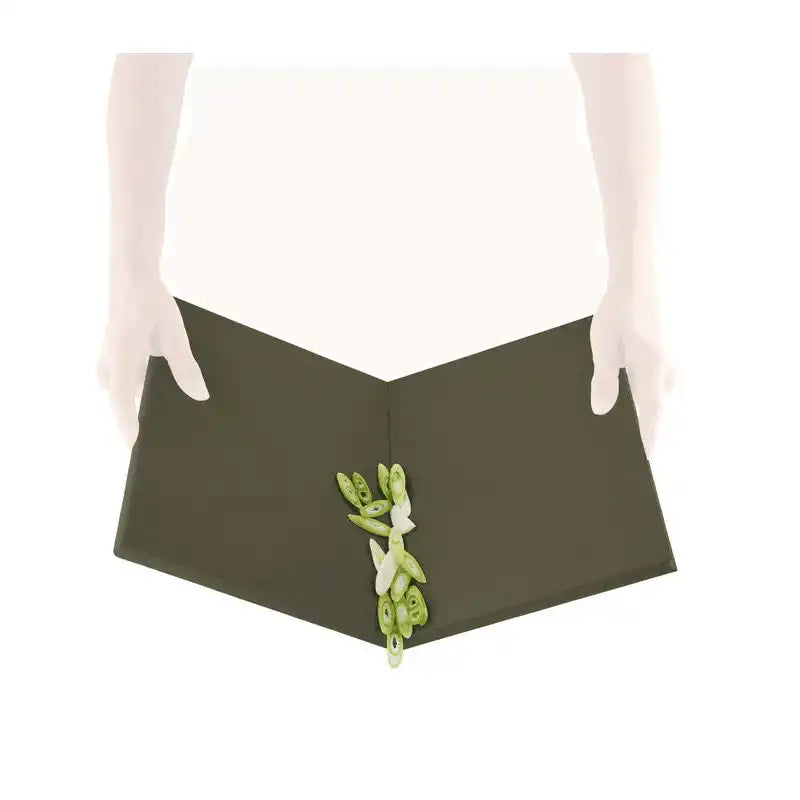 Ein Großes oder zwei Kleine? Das flexible Schneidebrett Green tool DoubleUp ist mit starken Magneten ausgestattet, damit man je nach Arbeitsschritt aus zwei kleinen Schneidebrettern im Handumdrehen ein großes machen kann. Wenn Sie die zwei Bretter zusammensetzen und das Brett nach dem Hacken oder Zerkleinern seitlich leicht hochklappen, sammeln sich die Zutaten in der Vertiefung in der Mitte und lassen sich viel leichter in die Pfanne oder den Topf schieben. So geht nichts mehr daneben. Je nachdem, wie viel Platz Sie in der Küche zur Verfügung haben, können Sie die Schneidebretter zusammengesetzt oder übereinandergelegt aufbewahren. Spülmaschinenfest.