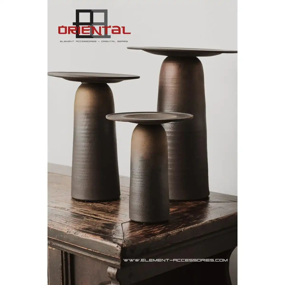 Die ULFUR-Serie hat gut ausgewogene vertikale und horizontale Elemente; spezielle Produktionstechnik mit ausgewähltem hochtemperaturbeständigem Ton; und mit einem Finish aus einer mineralischen Glasur mit natürlichem Erz, gekonnt im Ofen gebrannt (1360 ° C), um ein natürliches Aussehen und Gefühl von Bronze zu erreichen, das zu Schwarz verblasst.