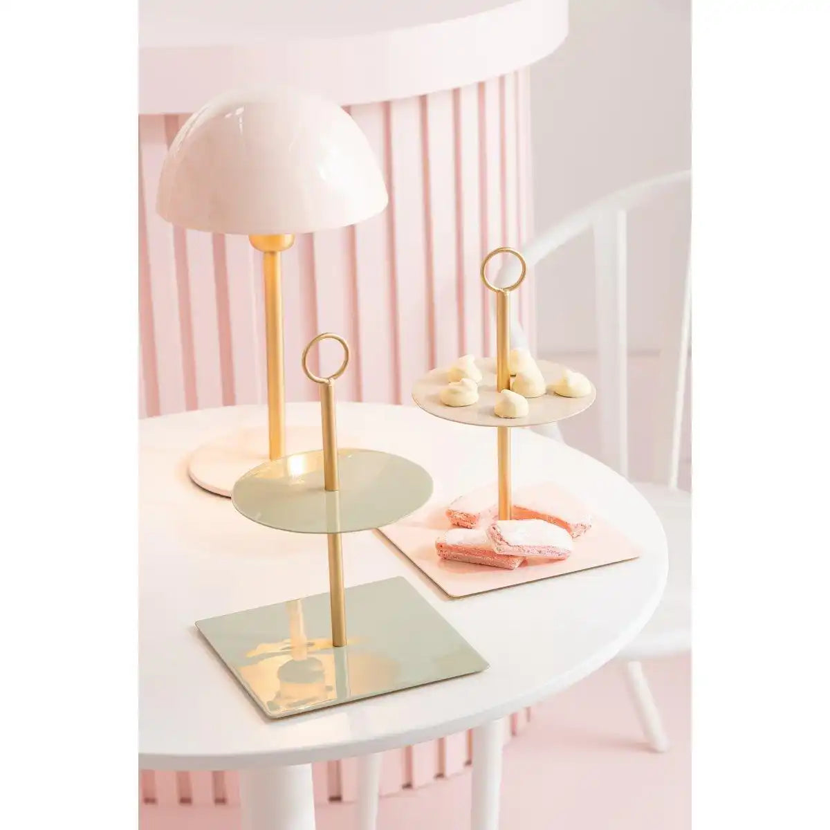 Essensständer rund+eckig aus Metall hellrosa/beige