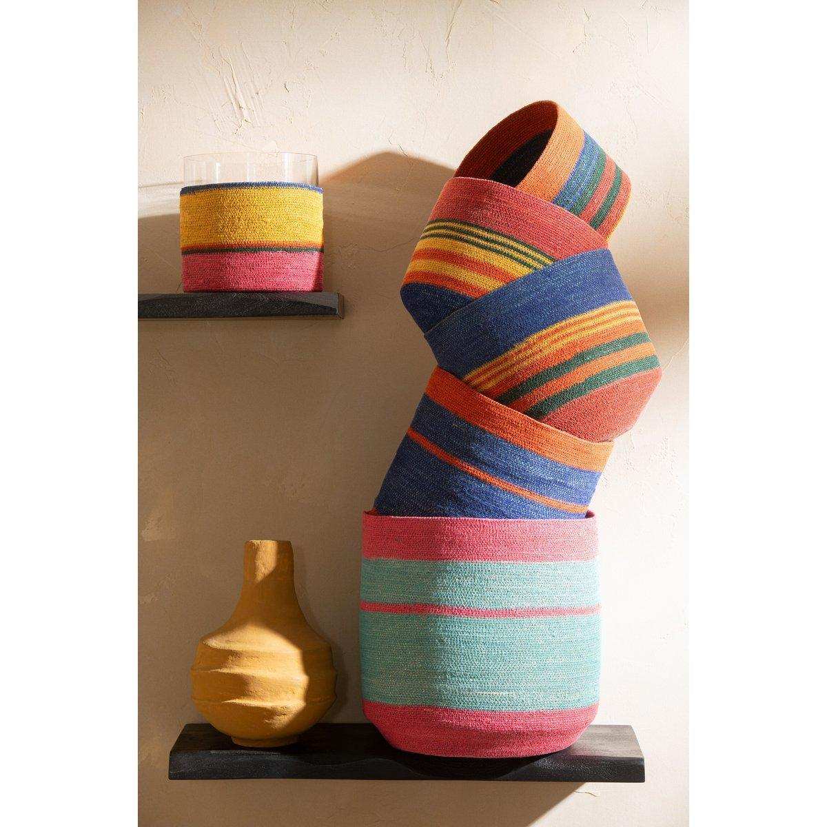 J-Line 3er-Set runder Korb mit kleinem Boden + gestreifter Seegrasmischung
