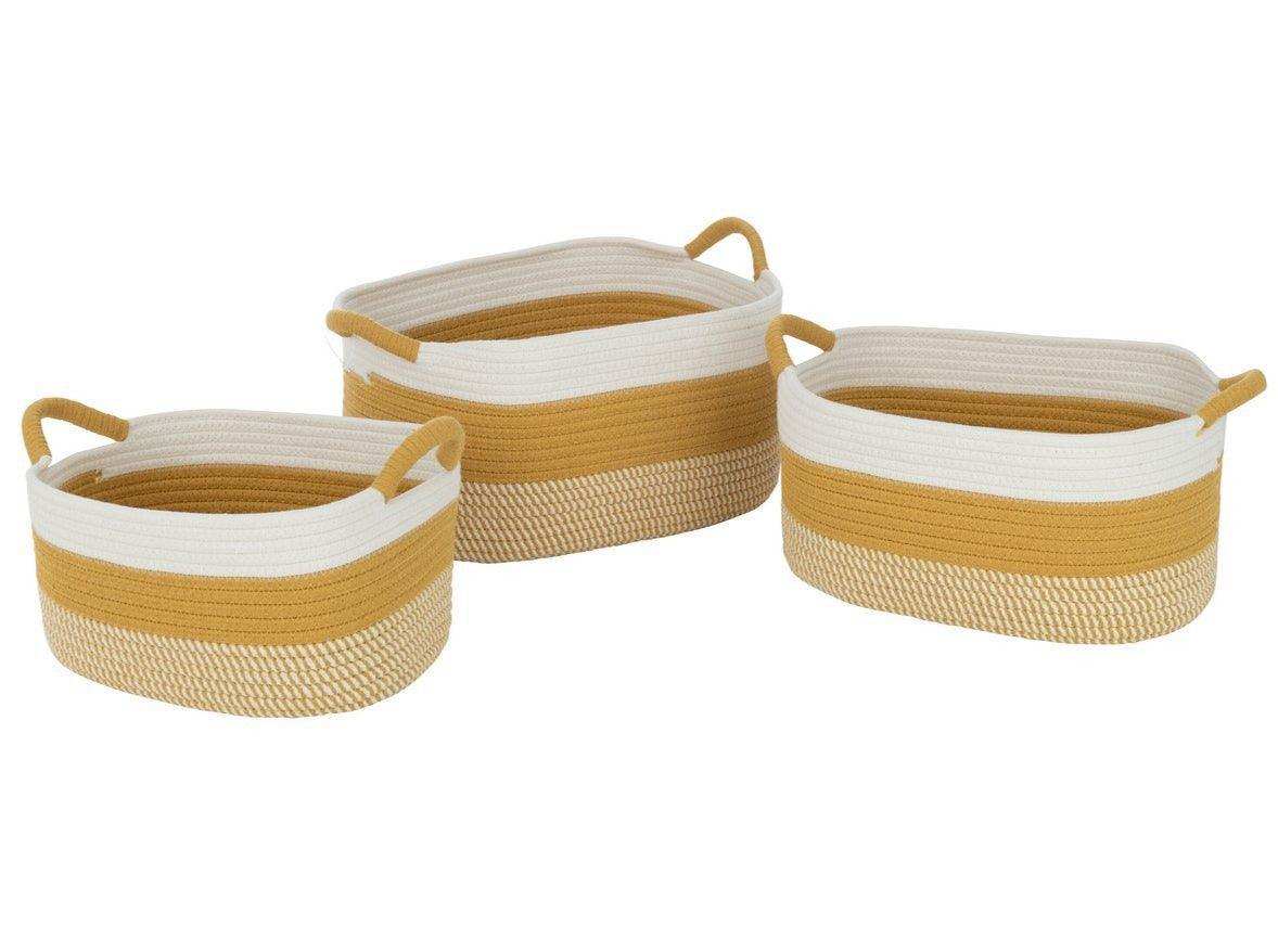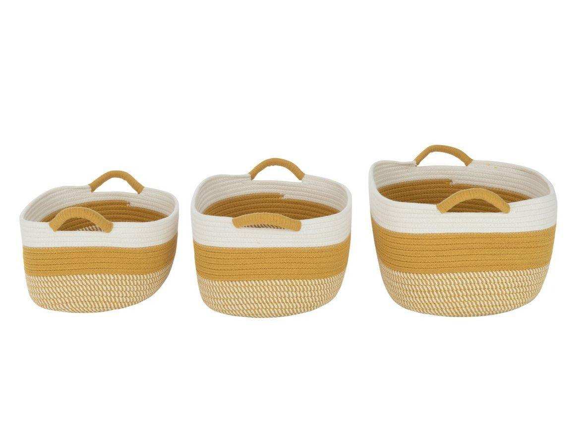 Bringen Sie mit dem 3er-Set Spulenkorb, rechteckig und gestreift, Ordnung und Stil in Ihren Raum. Hochwertiges Material und langlebige Konstruktion gewährleisten täglichen Gebrauch. Praktisches und ästhetisches Design sowie stabile Griffe für flexibles Organisieren von Spielzeug, Kleidung, Büchern und mehr. Verleihen Sie mit dem weißen/orange-farbenen Textilkorb Ihrem Interieur eine schlichte Eleganz.