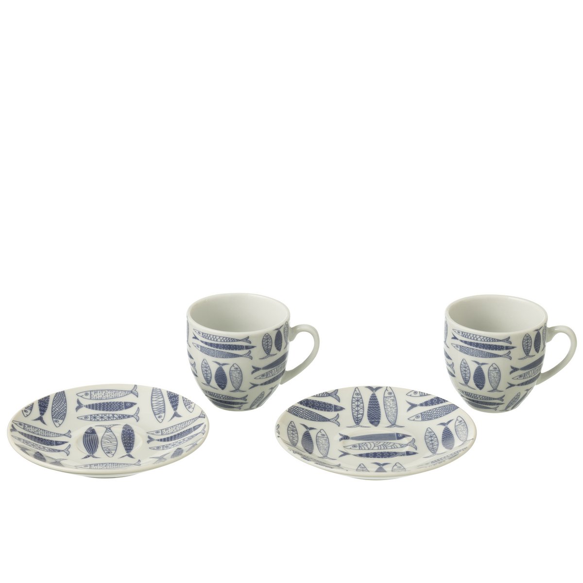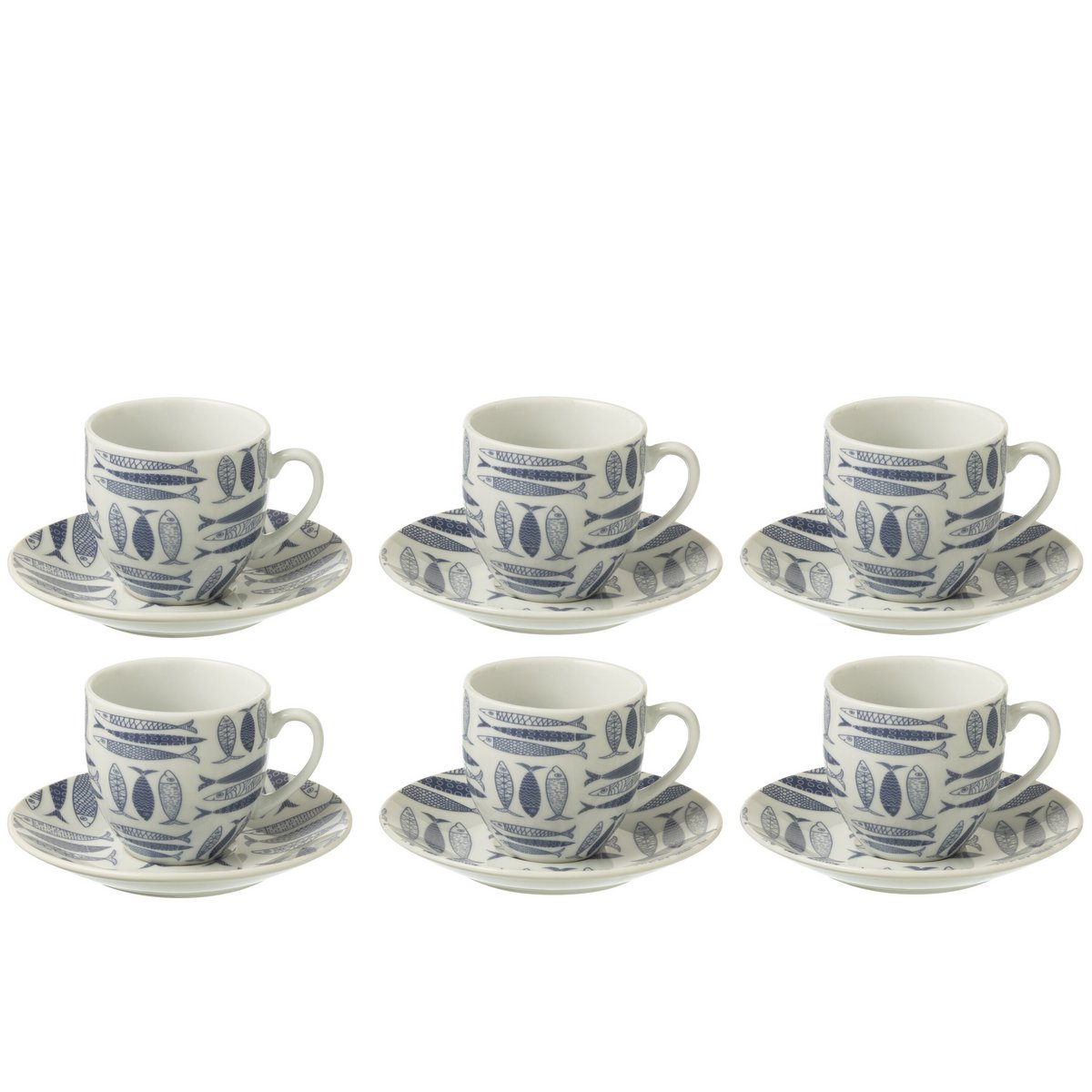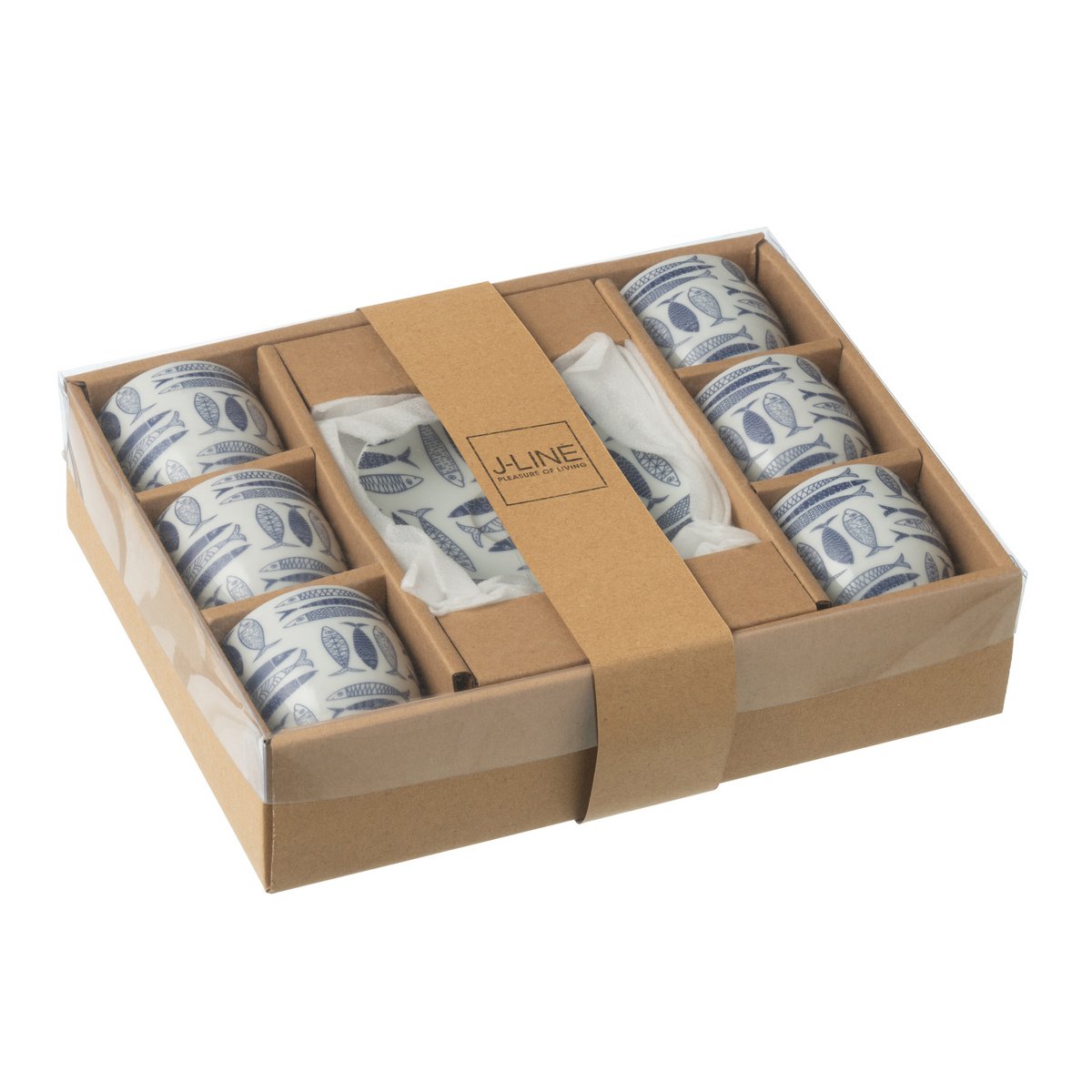 J-Line Box 6 Tassen+Schüssel Fisch Keramik dunkelblau