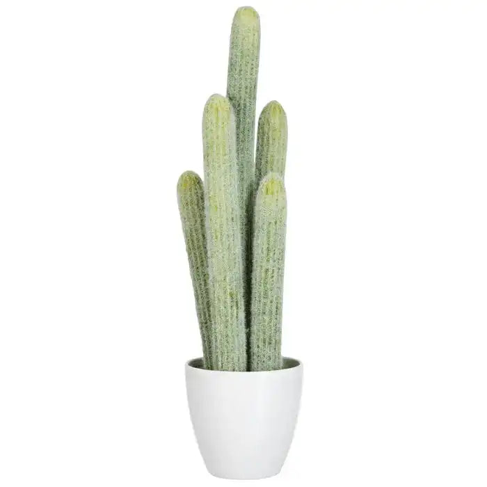 Cactus Set mit weißen Blumentop 5 Stück Hellgrün 52 cm