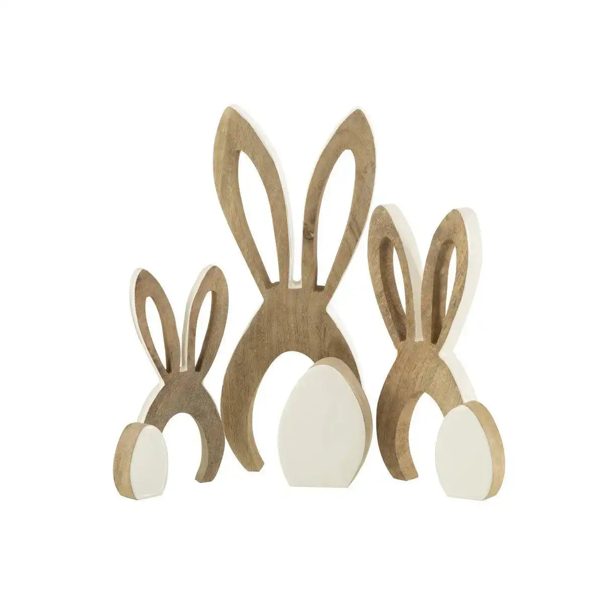 J-Line decoratoe Hasenohren – Holz – weiß/natur – groß