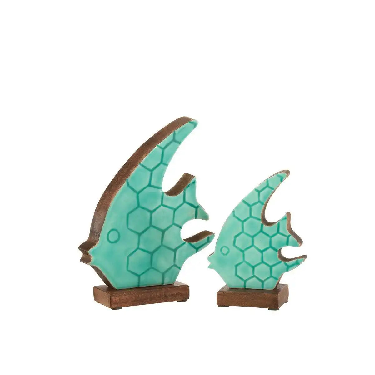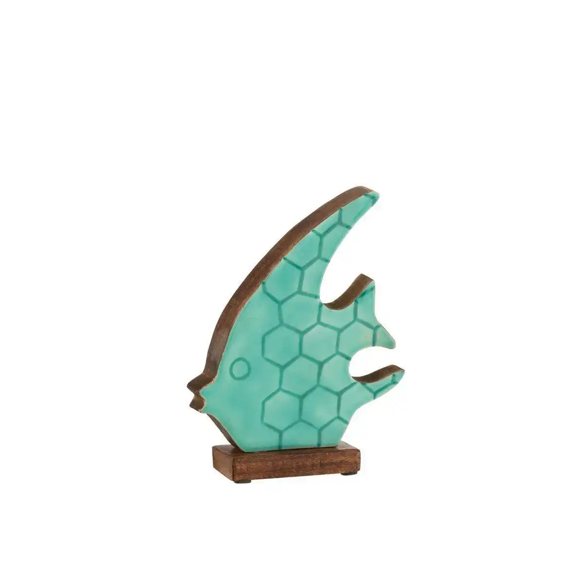 J-Line Dekoration Fisch auf Sockel – Holz – Azurblau – groß