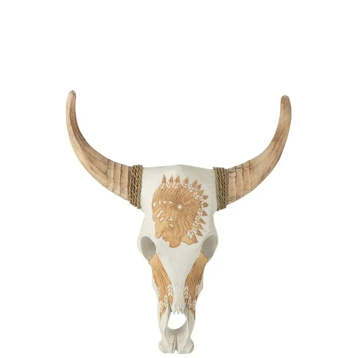 J-Line Dekoration Schedel Koe – Holz – Weiß