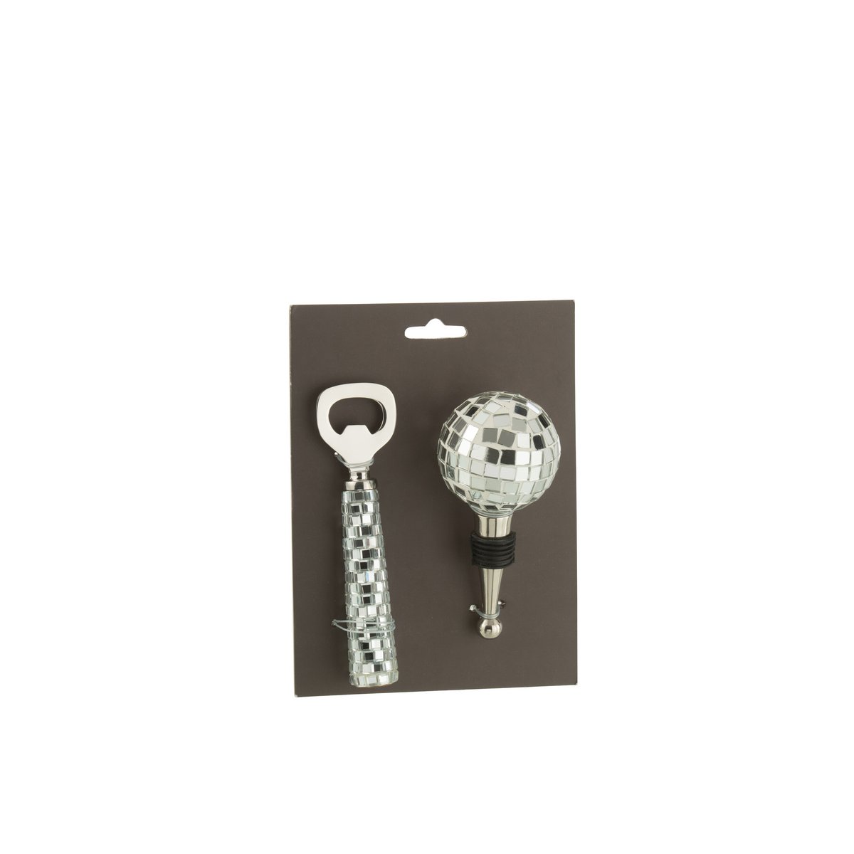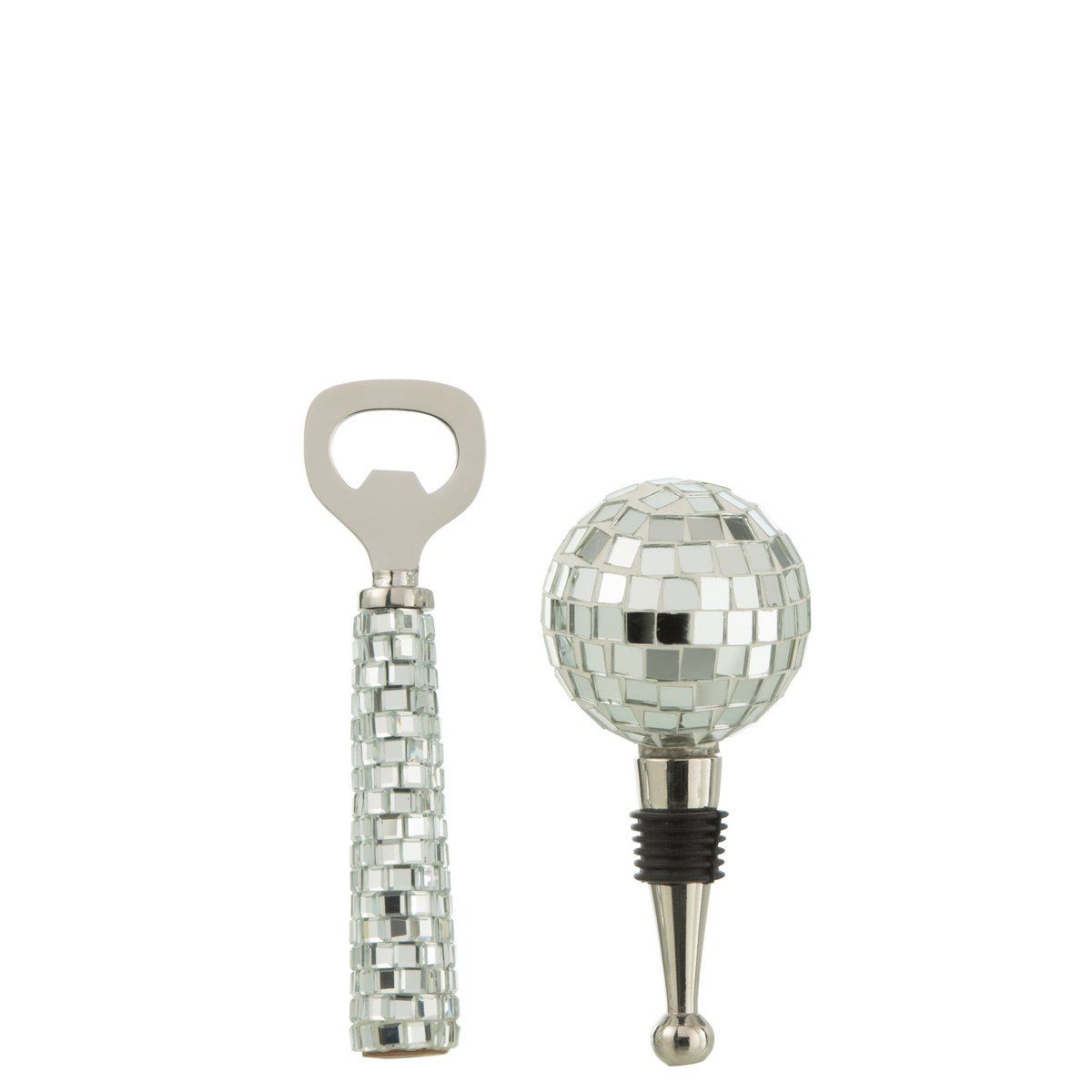 J-Line-Flaschenöffner + Flaschenstopp Mosaikglas silberfarben