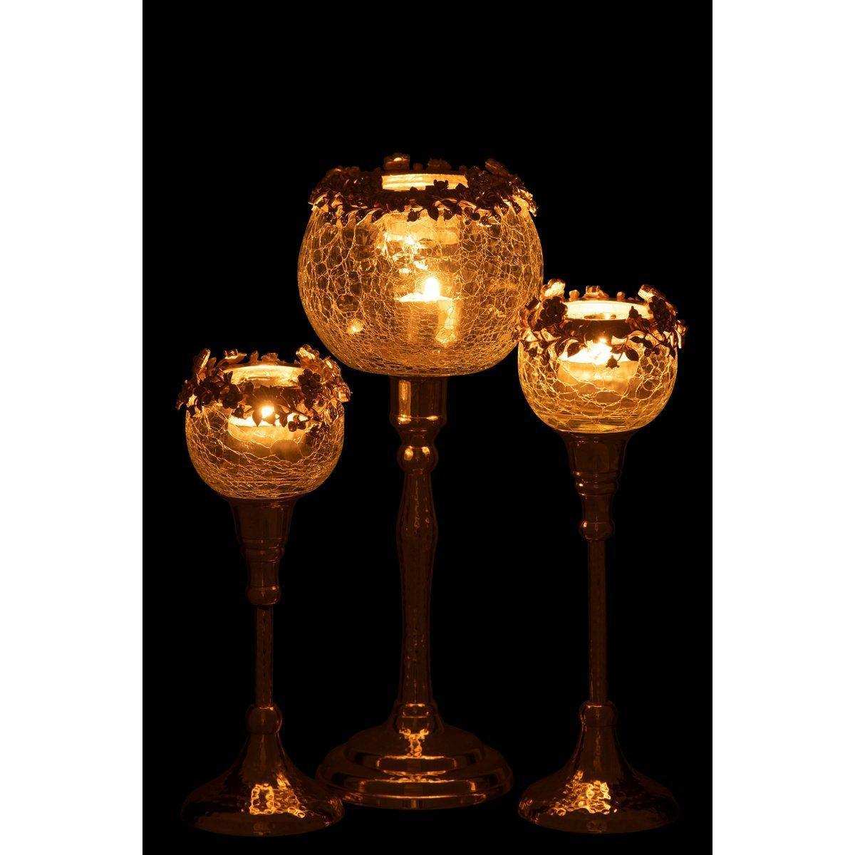 J-Line Kerzenhalter Viane – Metall/Glas – Gold/Transparent – groß