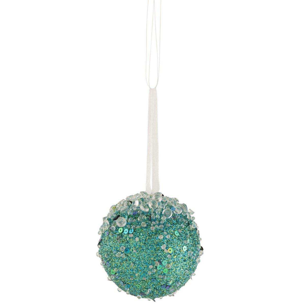J-Line Kugel zum Aufhängen, glitzernde Perlen, Azurgrün, klein
