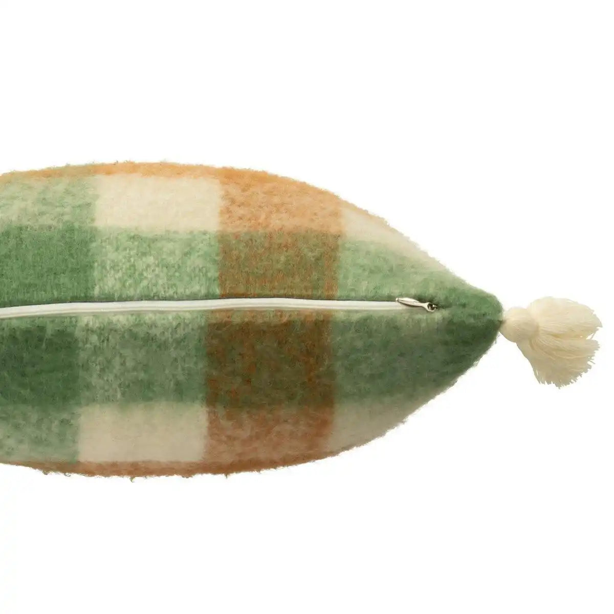 Kussen Ruitjes+Kwastjes Acryl Weiß/Grün/Braun