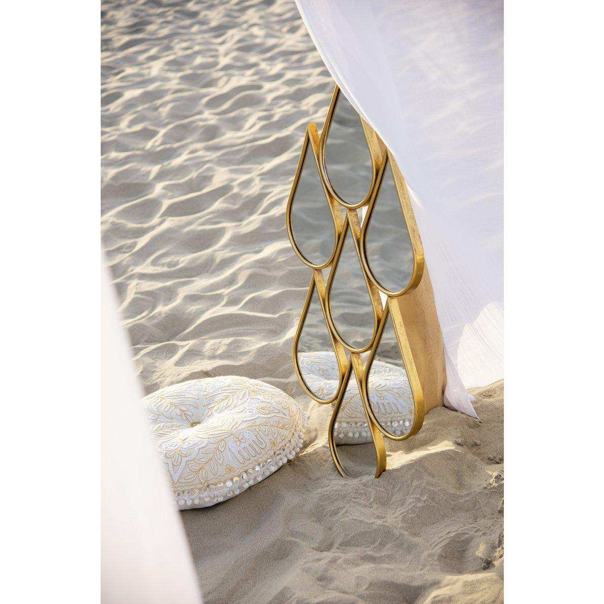 J-Line Pouf Round Flat Elephants + Mirrors Cotton Cream/Gold Small