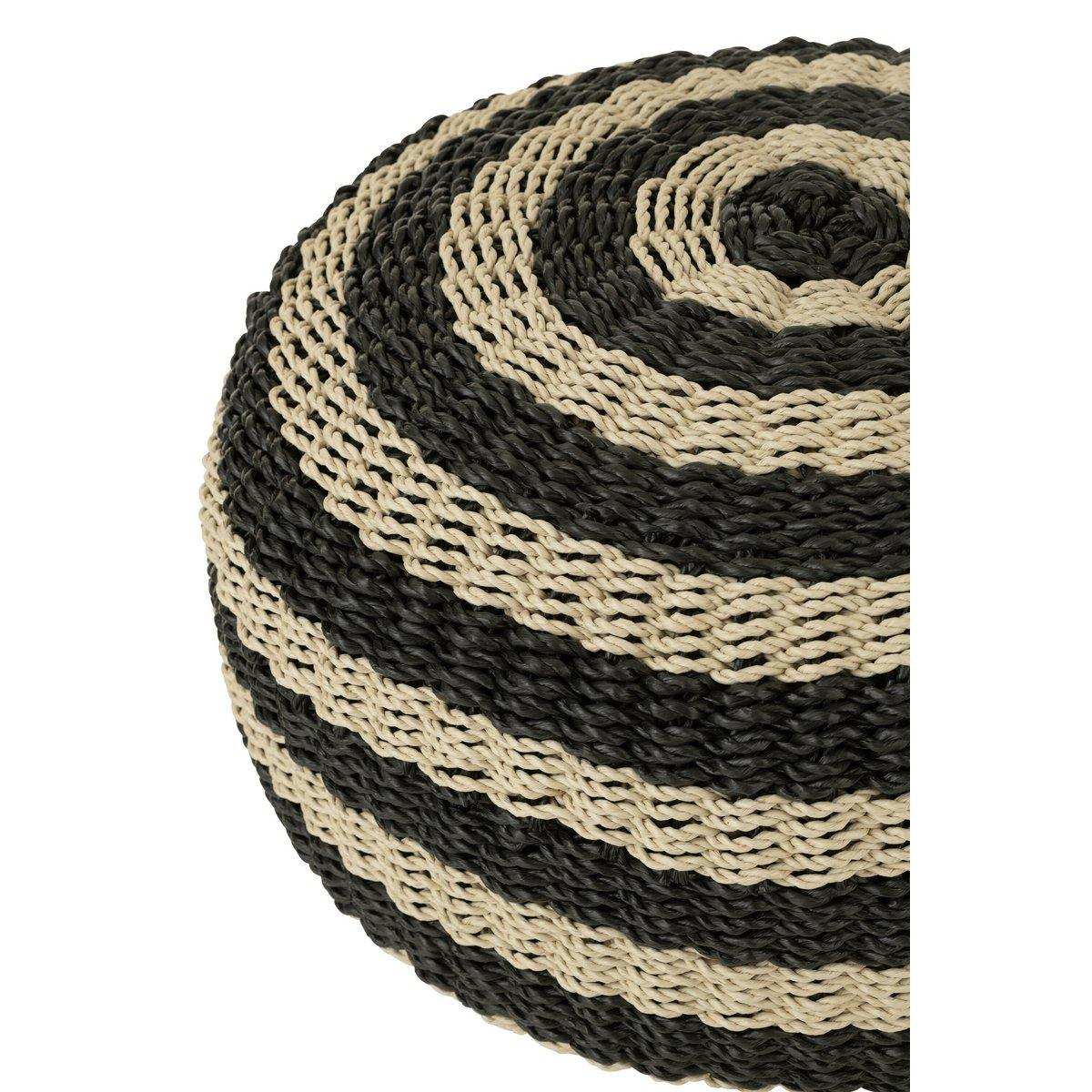 Pouf Round Stripes Woven - Kunststoff - schwarz/natur