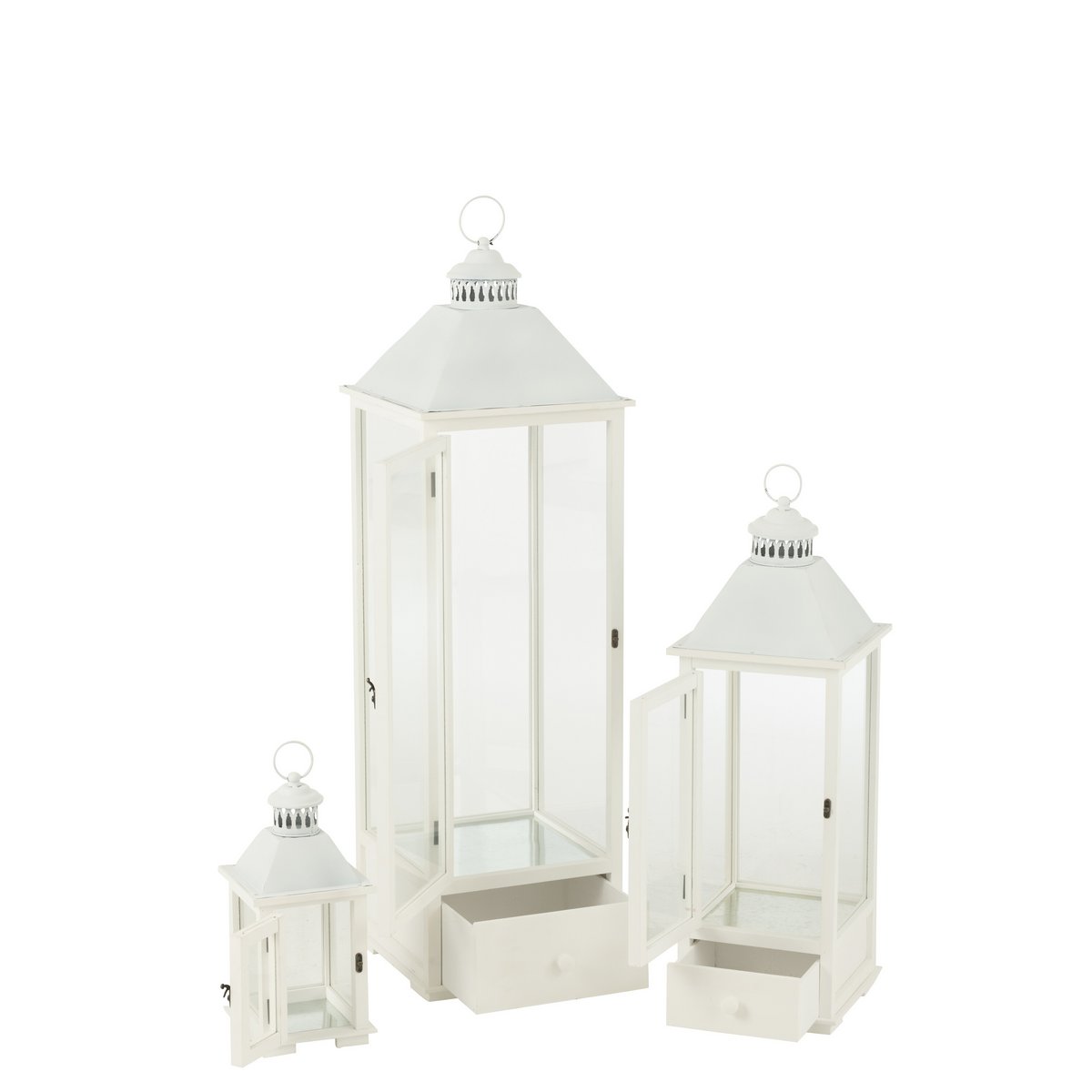 Set aus drei Laternentürmen aus Fichtenholz/Metall weiß