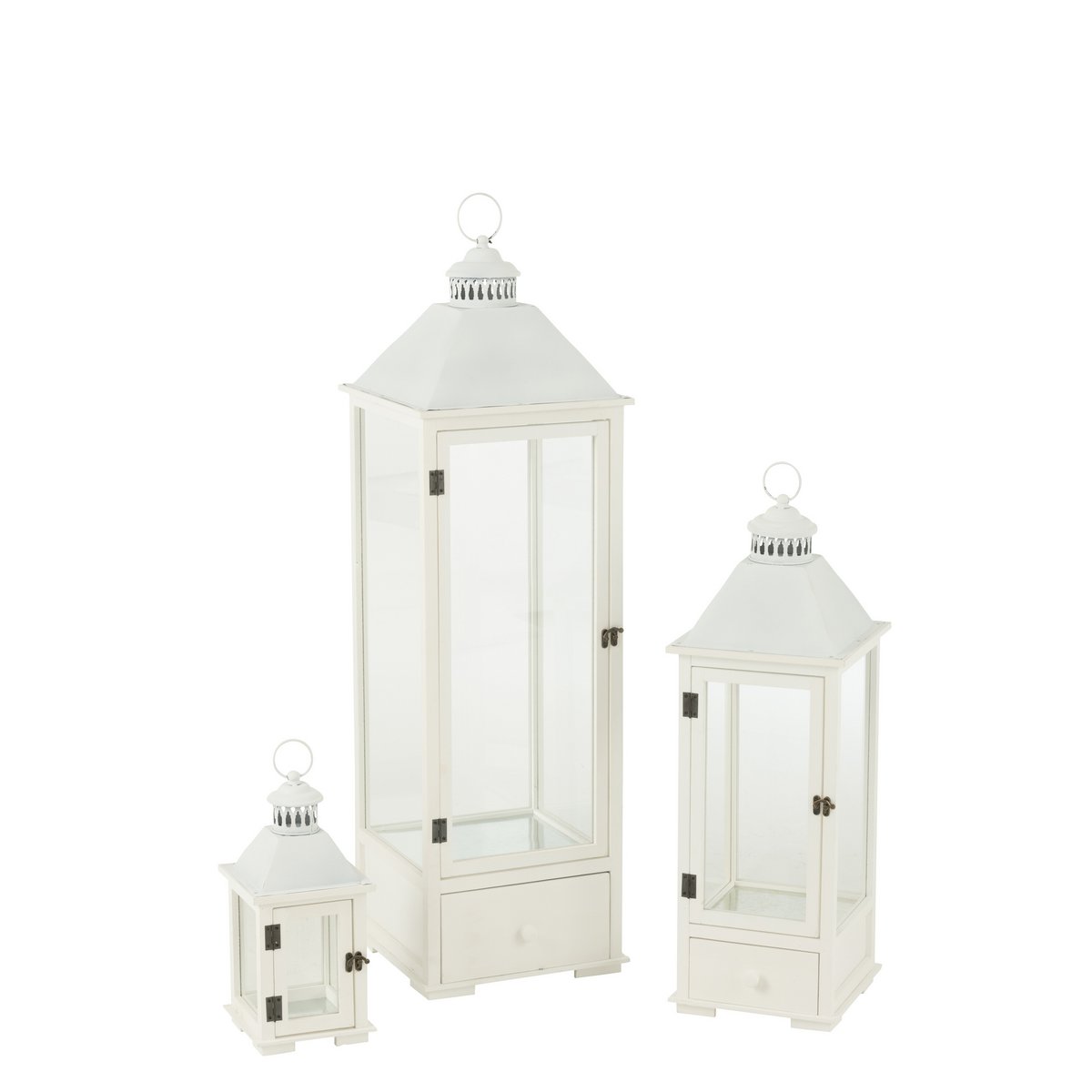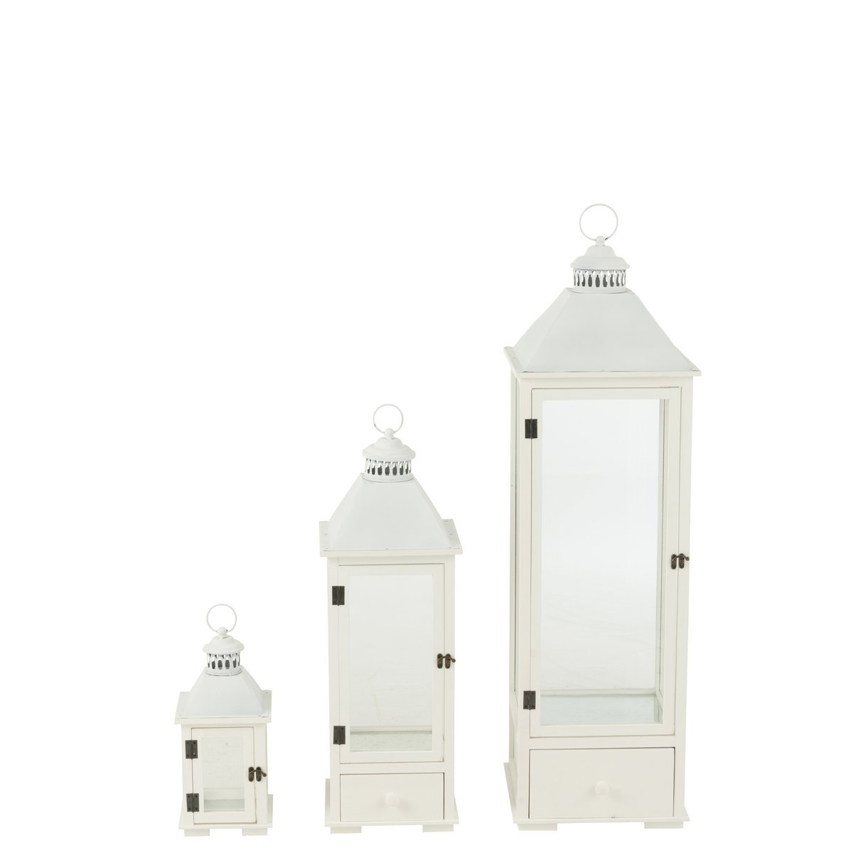 J-Line Set aus drei Laternentürmen, Fichtenholz/Metall, Weiß
