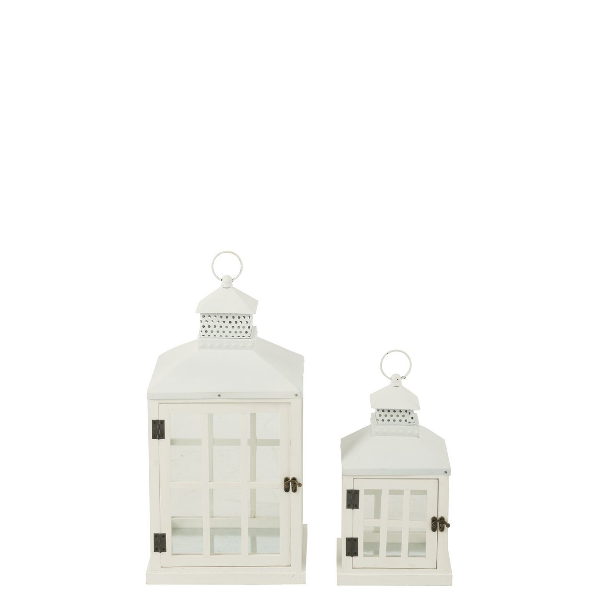 J-Line Set aus zwei Laternenhäusern, Fichtenholz/Metall, weiß