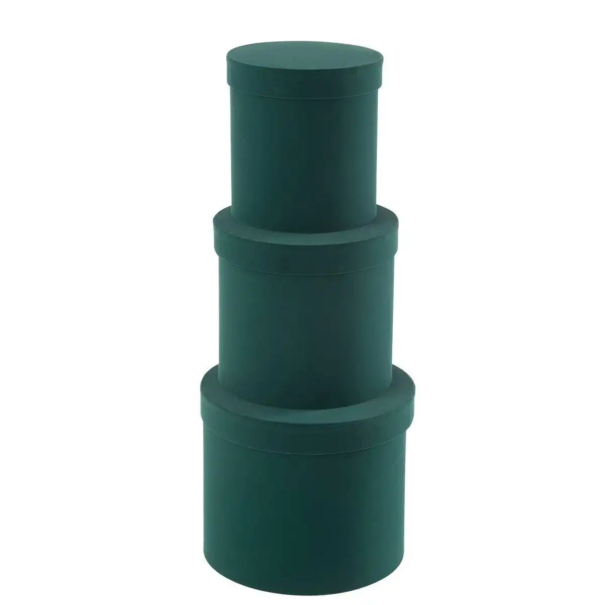 Set mit 3 runden Schachteln aus Samtpapier in Grün