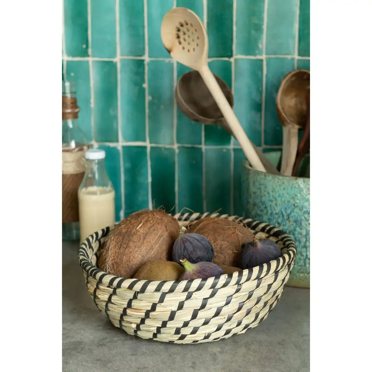 Set mit 3 runden Strohkörben, Natur/Schwarz