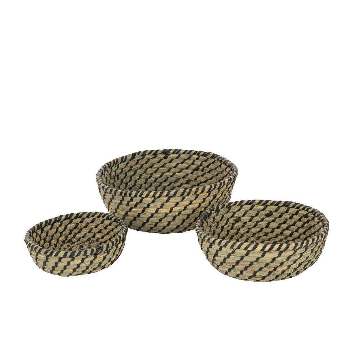 J-Line Set mit 3 runden Strohkörben, Natur/Schwarz