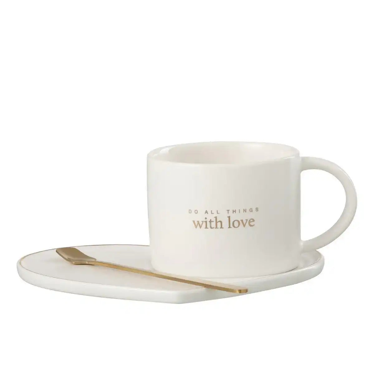 J-Line Tasche + Schüssel + Löffel Herz Porzellan Englisch Weiß