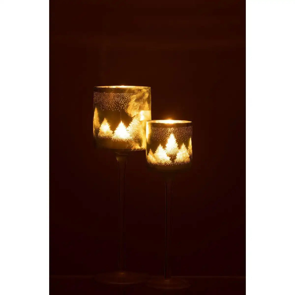 J-Line Teelichthalter Baum auf Fuß Glas Grün/Silber Groß