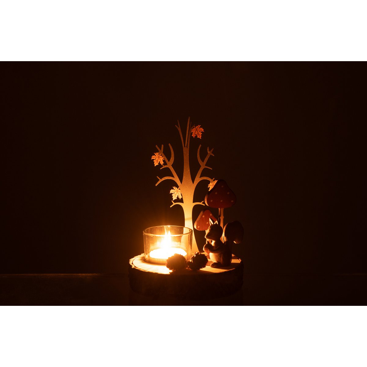 J-Line Teelichthalter Eichhörnchen/Baumholz/Metall Natur/Orange