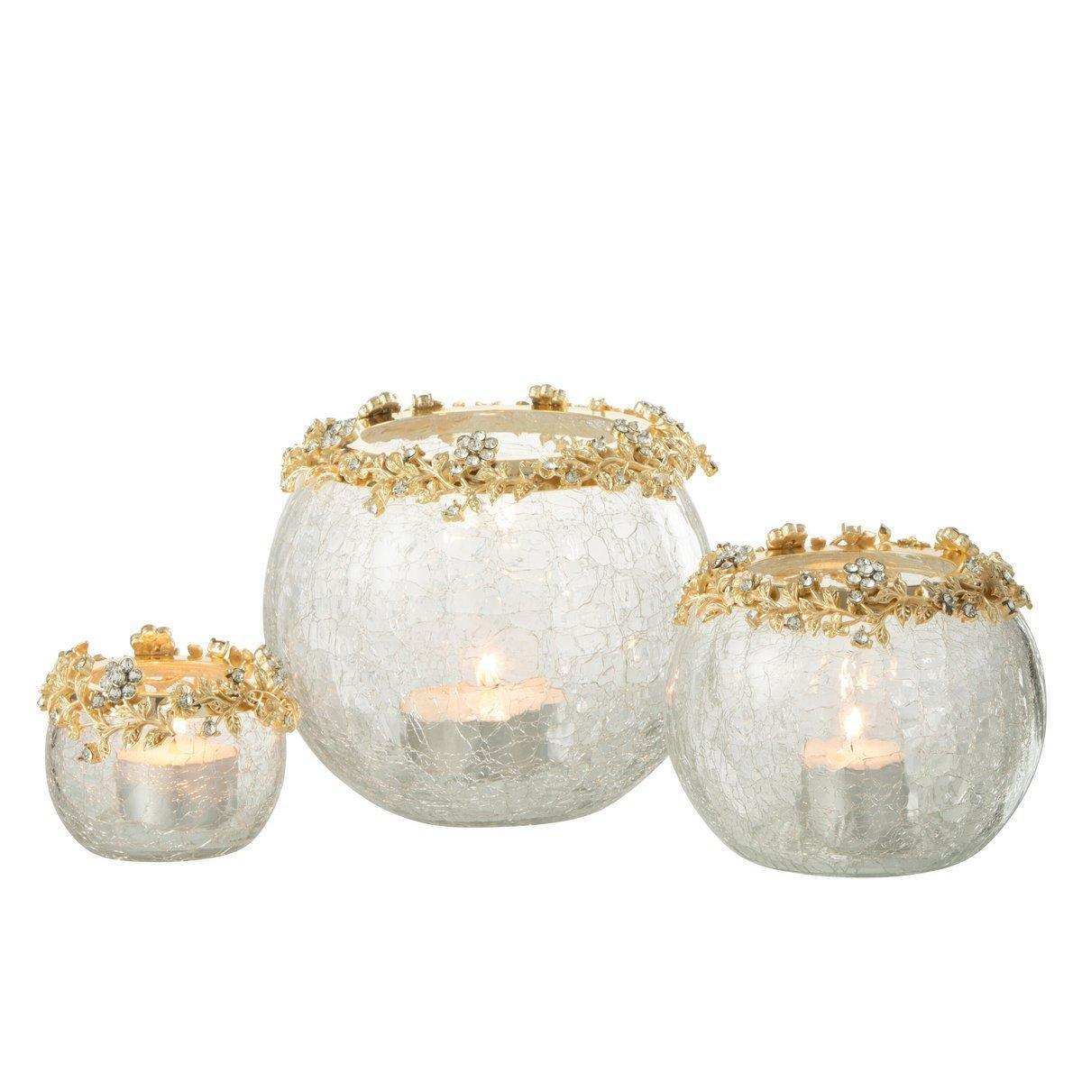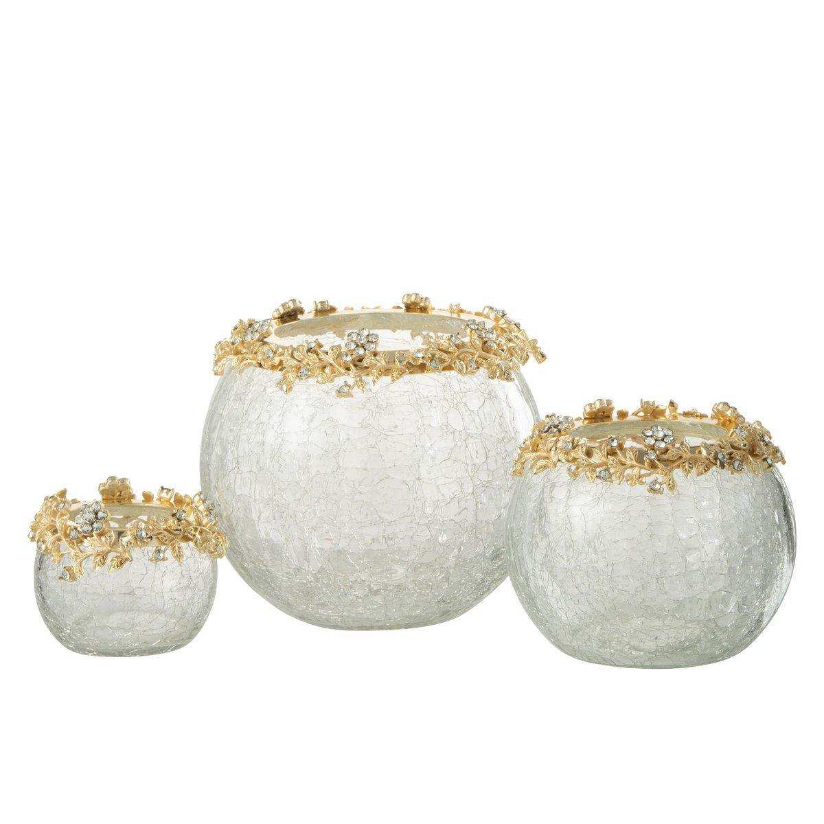 J-Line Teelichthalter Volve – Metall/Glas – Gold/Transparent – groß