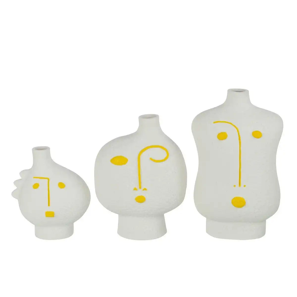 J -Line Vase Face Abstract - Porzellan - Gelb/Weiß