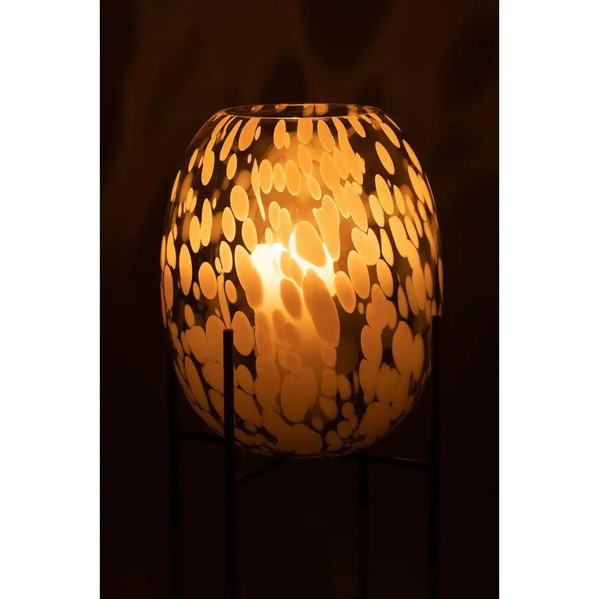 J-Line Vase On Foot Speckle – Glas – grau/weiß – groß