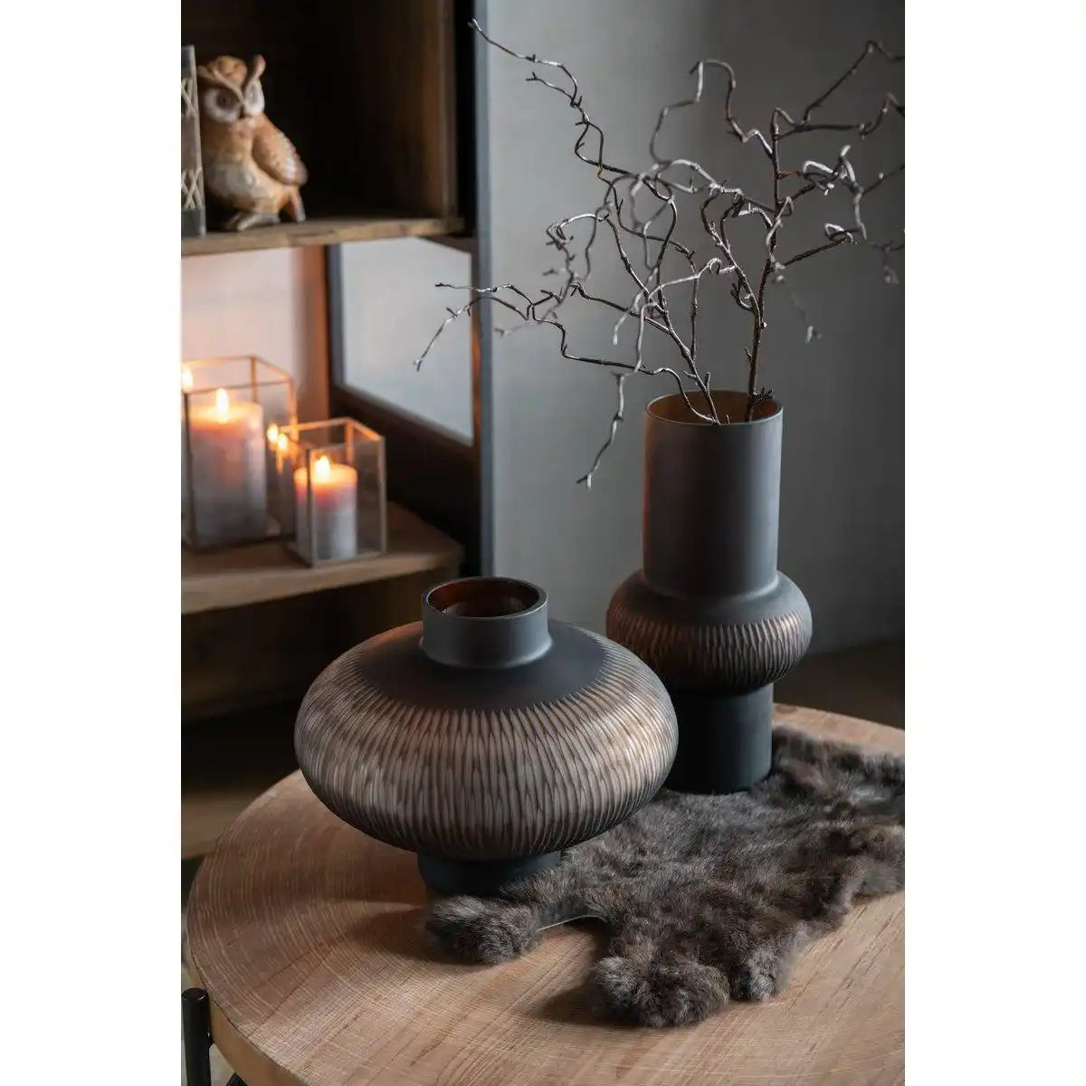 J-Line Vase Stripe Ball Low - Glas - Braun