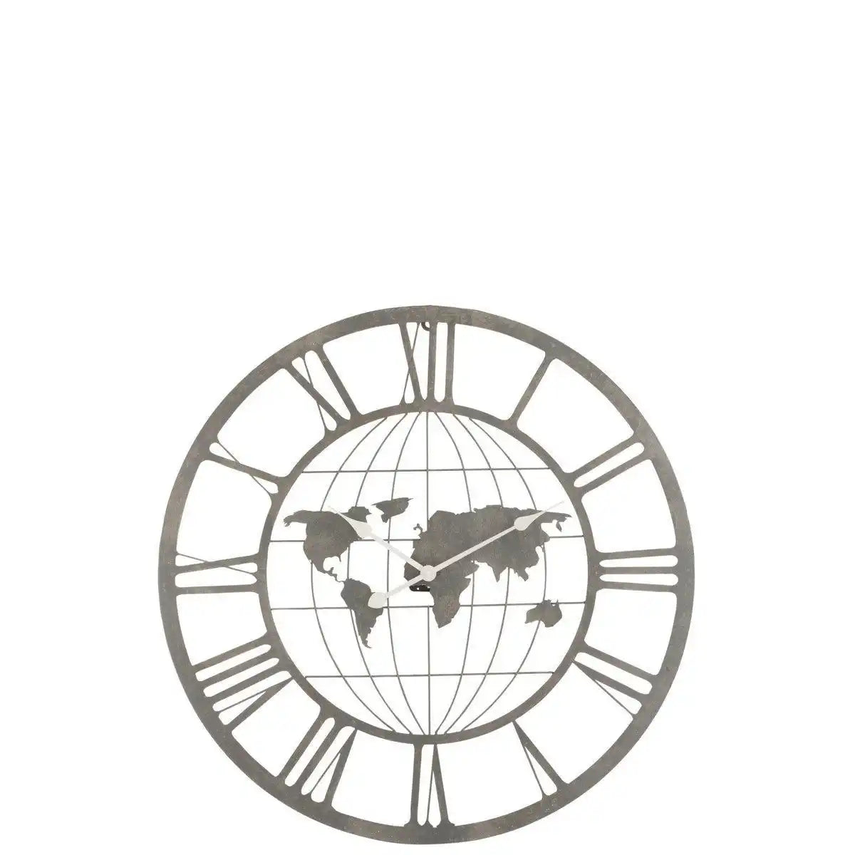 J-Line Weltkartenuhr mit römischen Ziffern – Metall – Schwarz – Ø 80 cm
