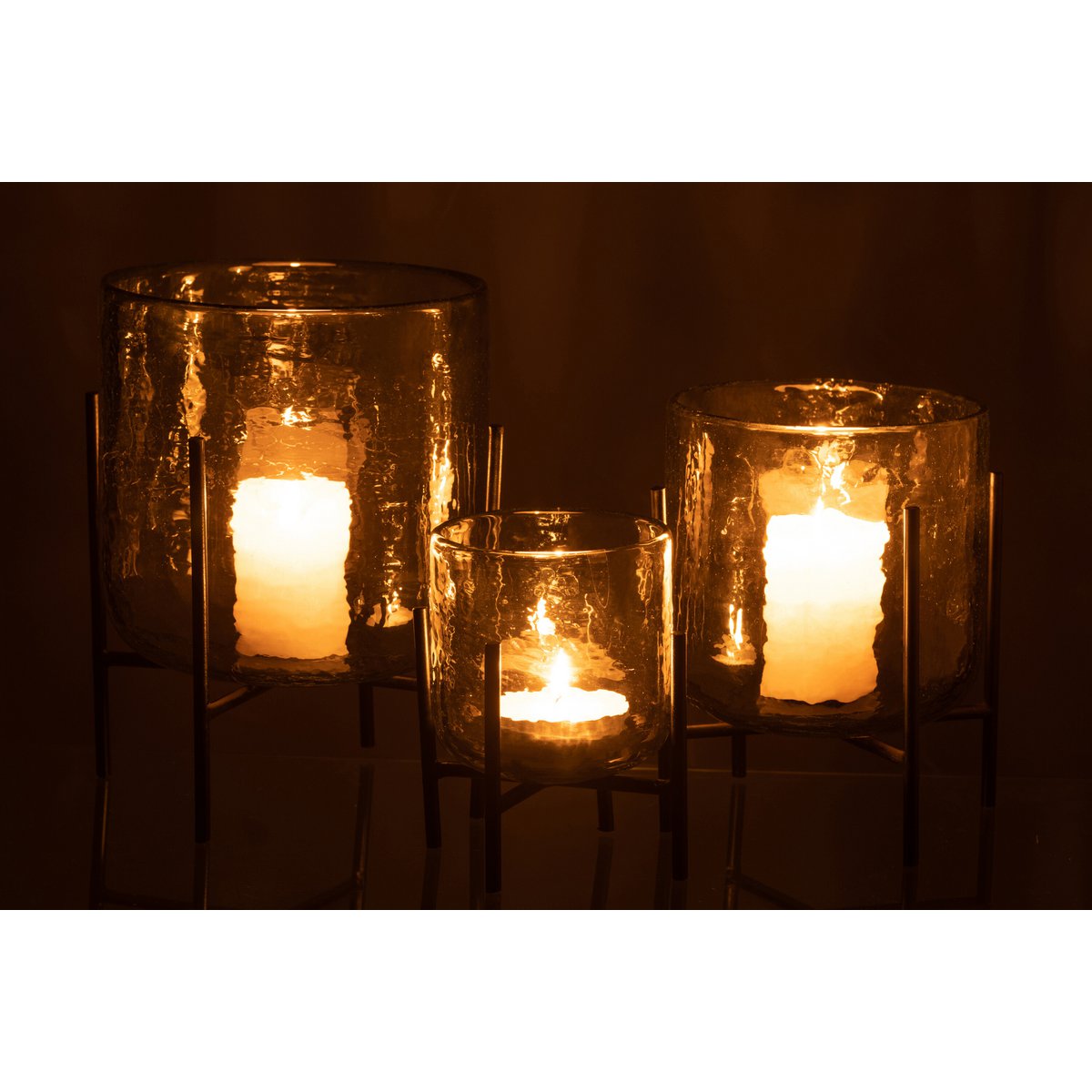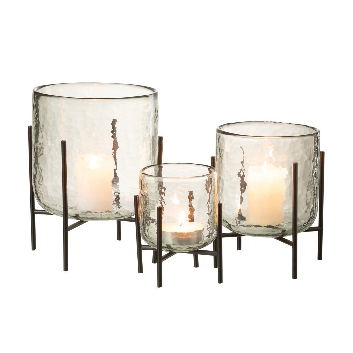 J -Line Windlicht stehend - Glas/Eisen - transparent - groß