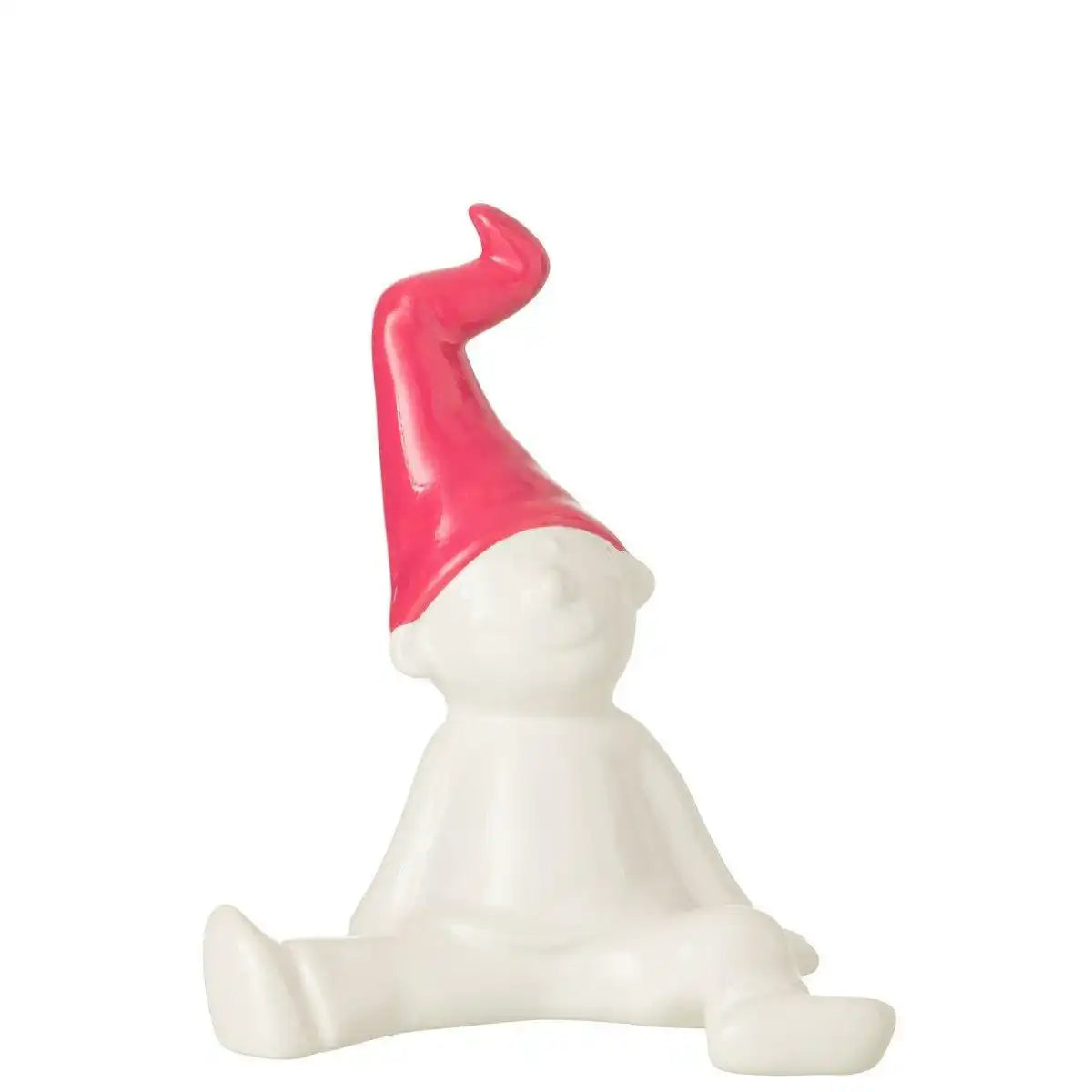 J-Line Zwerg sitzend, Keramik, Weiß/Fuchsia, groß