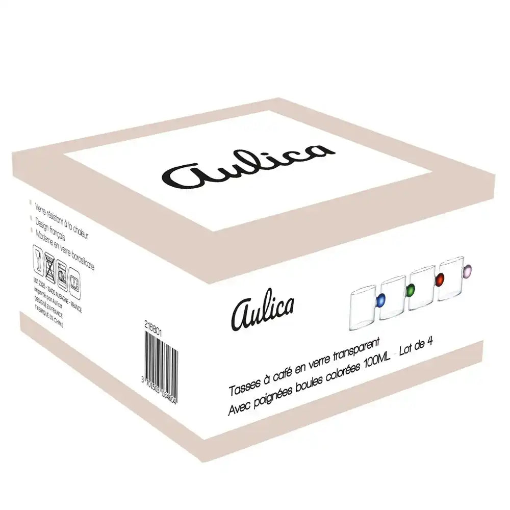 216801 - Set von 4 Kaffeetassen in transparentem Glas mit farbigem Ballgriff - Aulica