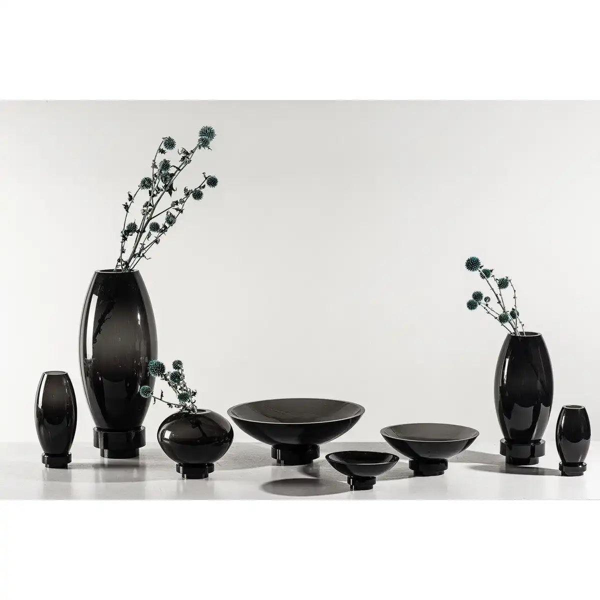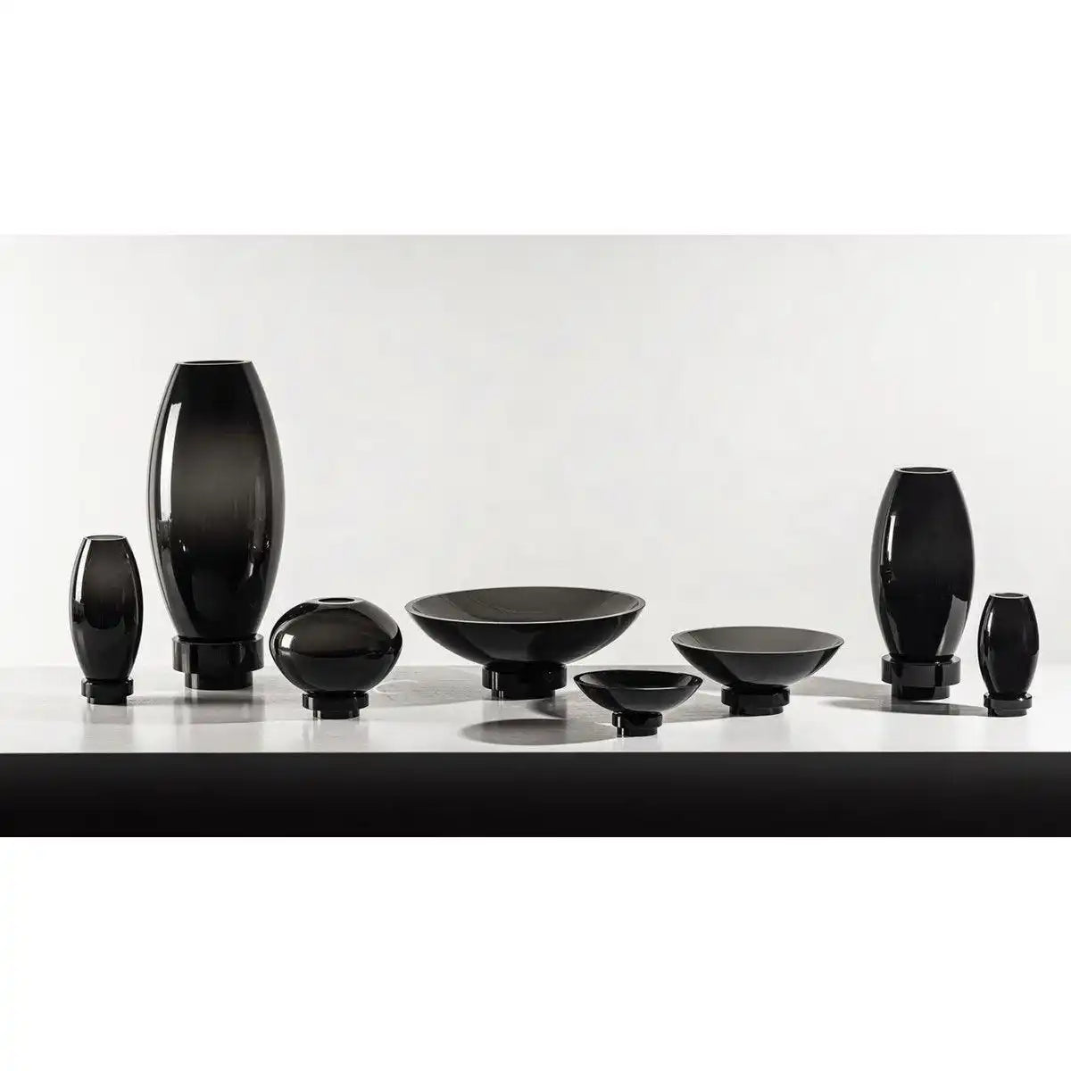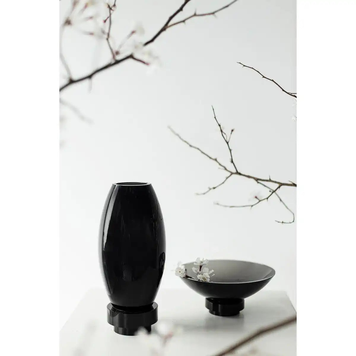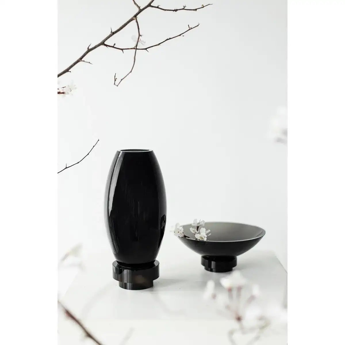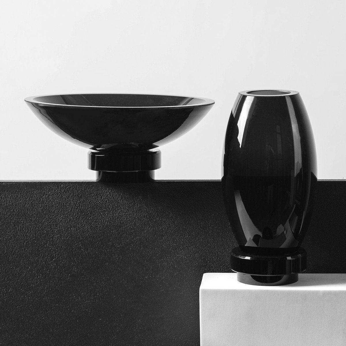 Innovatives Design, das sich wie ein Klassiker anfühlt. Diese Schale ist so perfekt geformt, gut proportioniert und meisterhaft aus tiefdunklem Glas gefertigt. Der talentierte Designer ist ein Pionier des neuen modernen chinesischen Designs und zeigt bereits Reife und Persönlichkeit mit einer strahlenden Zukunft. Die RUDAL-Serie hat 2 weitere Modelle, Vasen, ebenso originell.