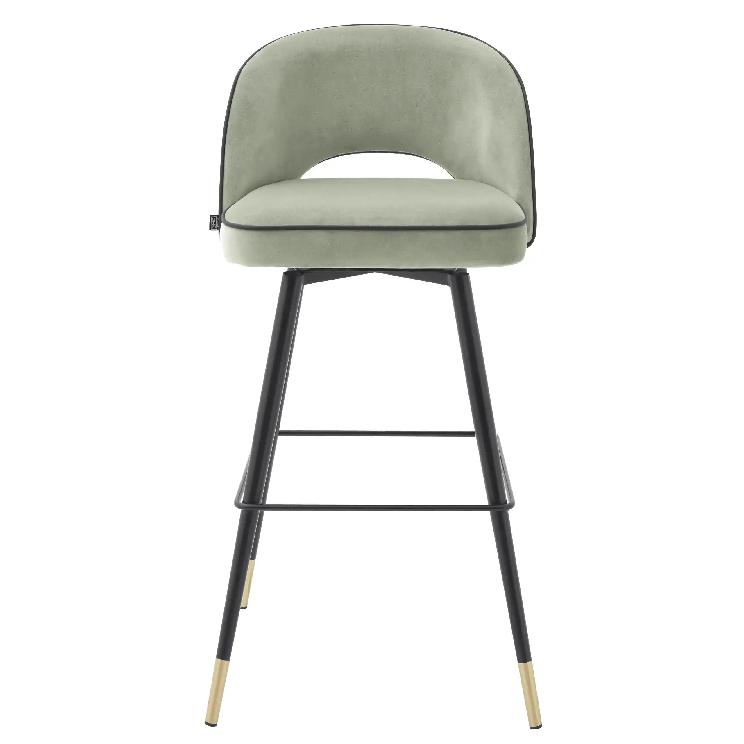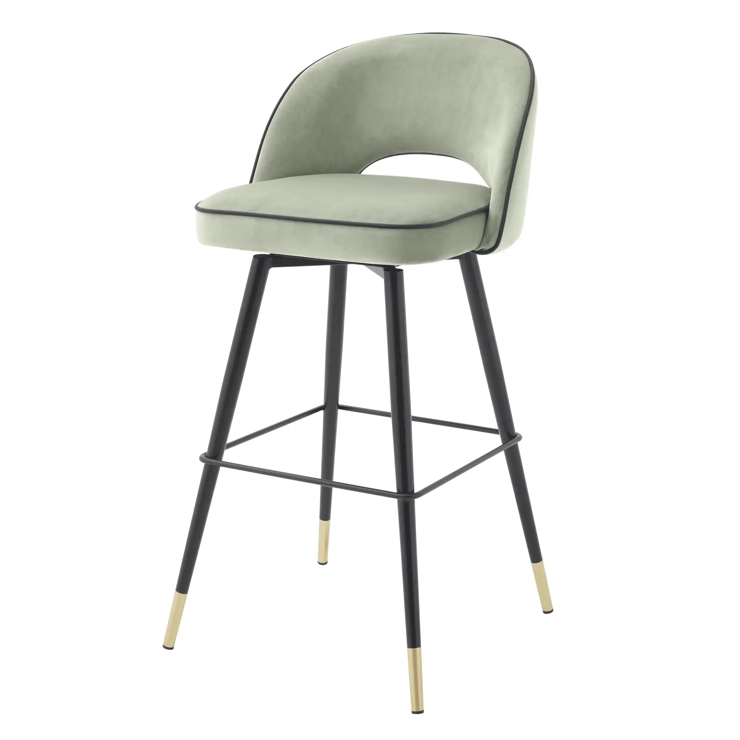 2er Set Barhocker Samt Barstuhl schwarze Kunstlederpaspelierung Messing-Finish