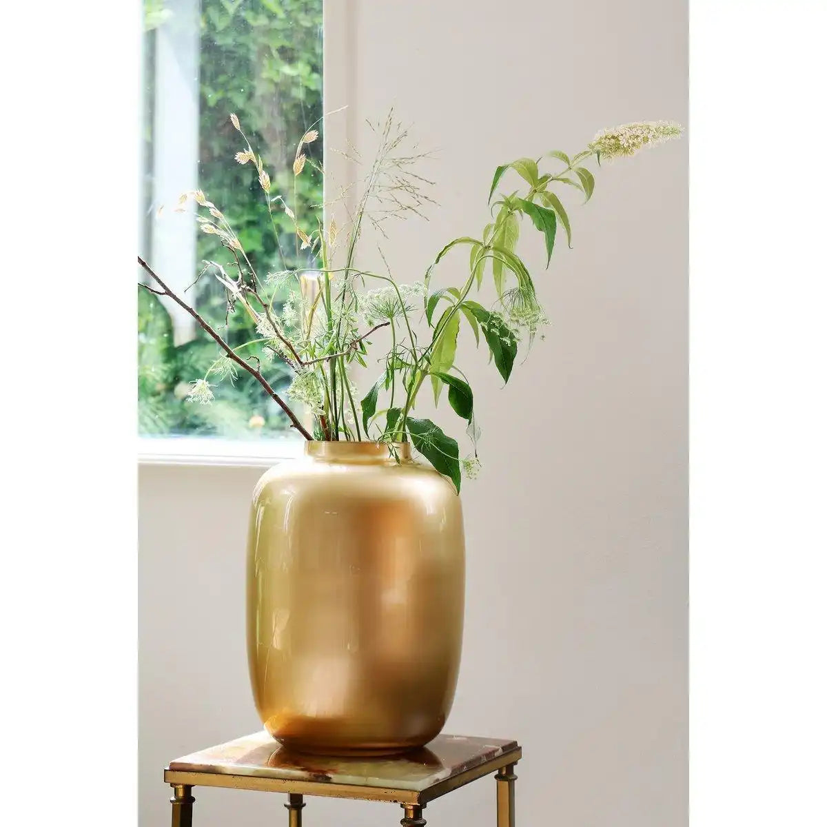 Diese Artic Gold Vase ist eine absolute Bereicherung für Ihr Interieur. Die Vase eignet sich perfekt für die Präsentation all Ihrer schönen (getrockneten) Blumen. Außerdem liegen Sie mit Gold voll im Trend!