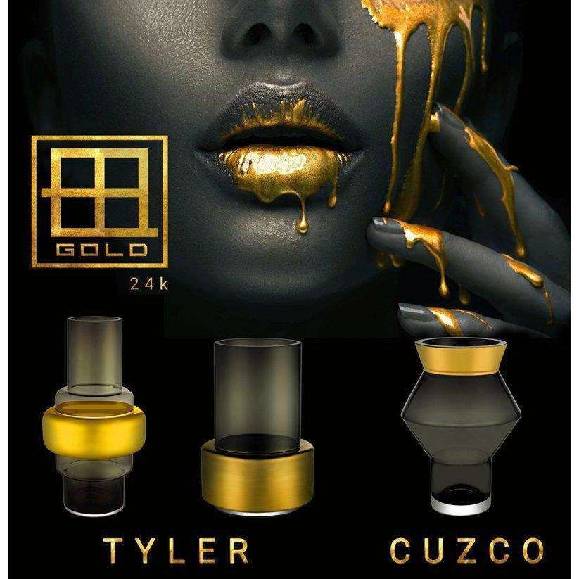 Luxusglas im Retro-Stil, grau + 24-karätige Goldvase XXL, TYLER 46GO, 9 mm dickes Glas