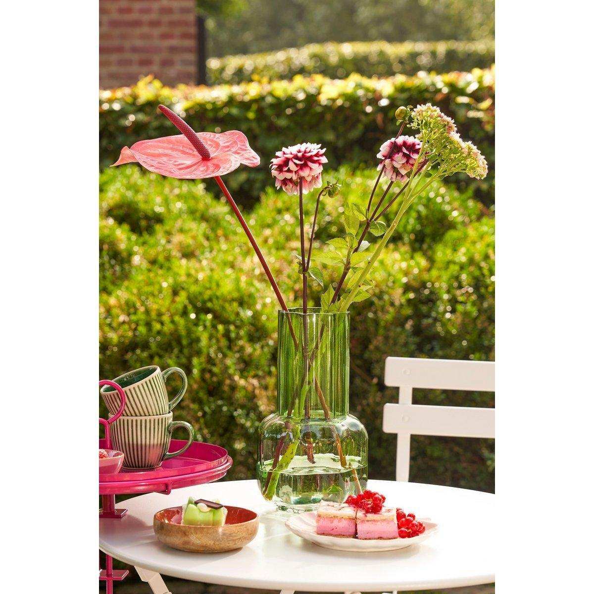 Platzieren Sie einige wunderschöne Blumen in dieser Missouri-Vase von Mica Decorations und Ihr Interieur wird sofort erstrahlen! Die Vase hat eine gerippte Oberfläche und ist aufgrund der schmalen Öffnung an der Oberseite ideal für ein paar Blumen. Auch lustig: Machen Sie Ihren eigenen wilden Blumenstrauß mit Blumen aus Ihrem eigenen Garten! Die Glasvase ist in verschiedenen Farben erhältlich. Dieser ist grün und hat eine Höhe von 25 cm und einen Durchmesser von 14,5 cm.