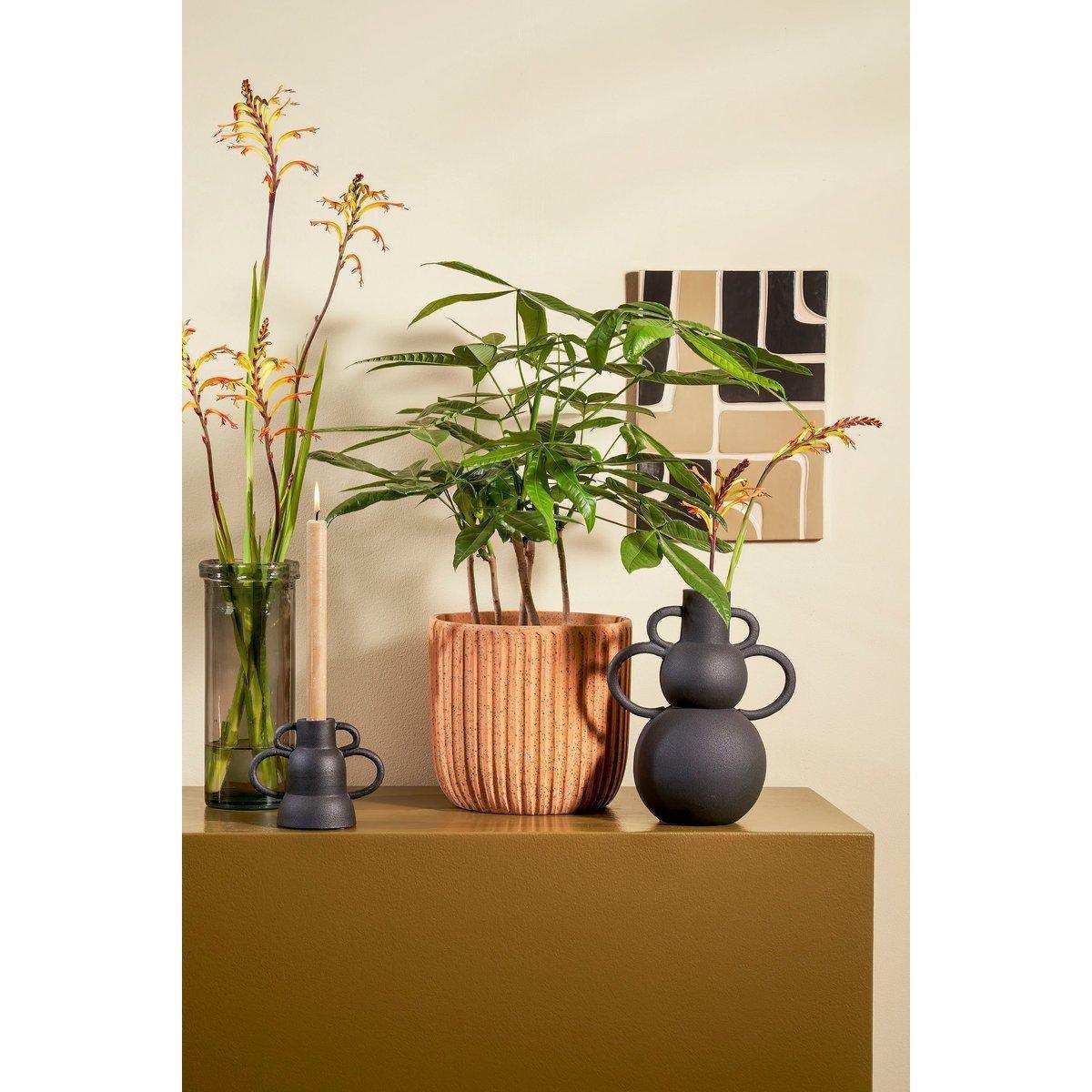 Vase Pepe von Mica Decorations ist schön, praktisch und auch langlebig. Die graue Vase wird in Spanien hergestellt und besteht zu 100 % aus recyceltem Glas. Die Blumenvase ist wunderschön handgefertigt und das ist auch im Design deutlich zu erkennen. Aufgrund der großen Größe und der breiten, stabilen Öffnung eignet sich die Vase sehr gut für einen Blumenstrauß oder schöne dekorative Kunstblumen oder Zierzweige. Die Vase ist 28 cm hoch und hat einen Durchmesser von 12 cm. Lässt sich auch gut mit mehreren recycelten Vasen aus der Pepe-Kollektion von Mica Decorations kombinieren.